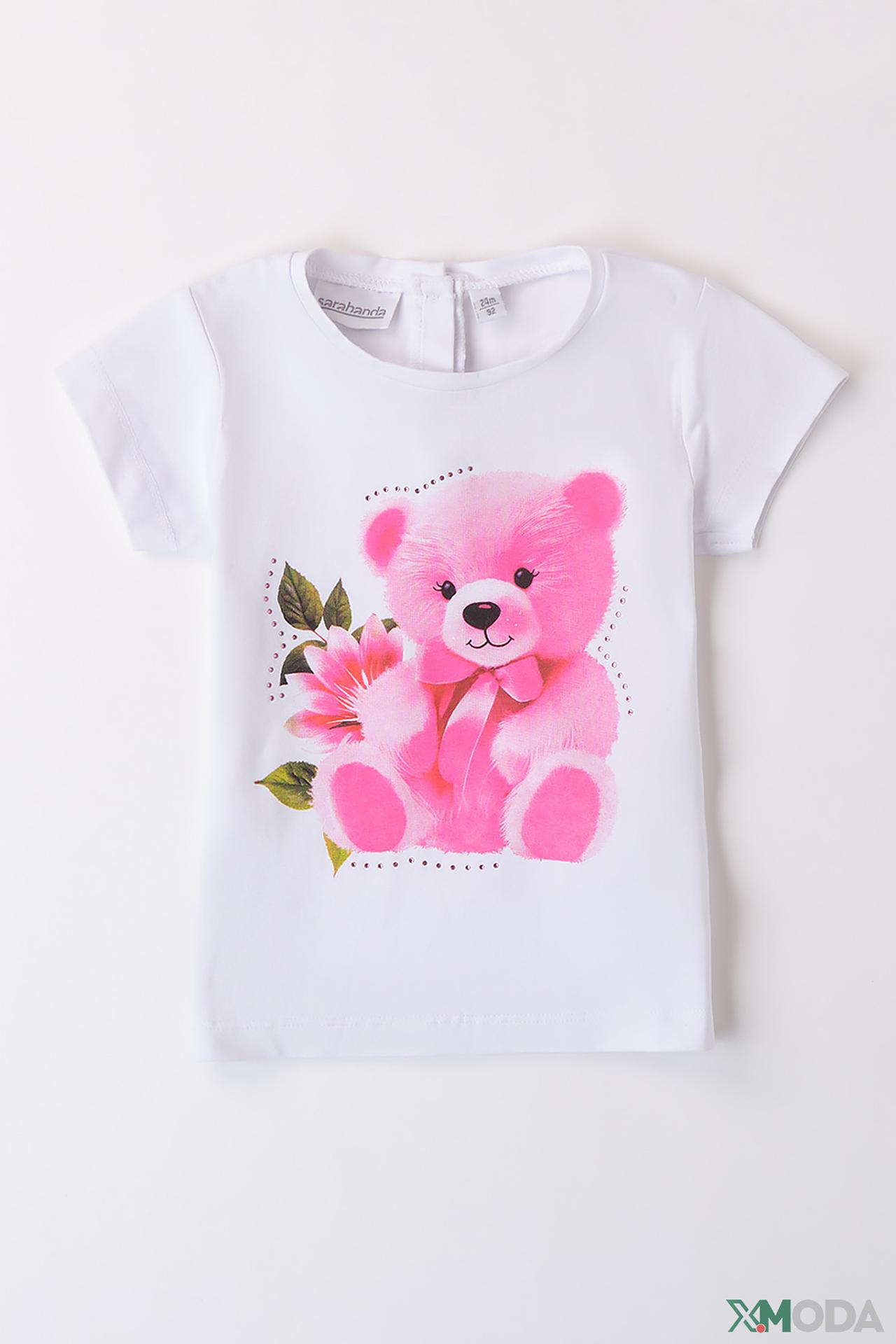 Нежная и комфортная футболка Sarabanda для маленьких модниц. Изготовлена из высококачественного хлопка с добавлением эластана, что обеспечивает мягкость, эластичность и отличную посадку по фигуре. Идеальный выбор для повседневной носки, активных игр и прогулок на свежем воздухе. Футболка декорирована милым принтом с изображением медвежонка, который обязательно понравится вашей малышке.