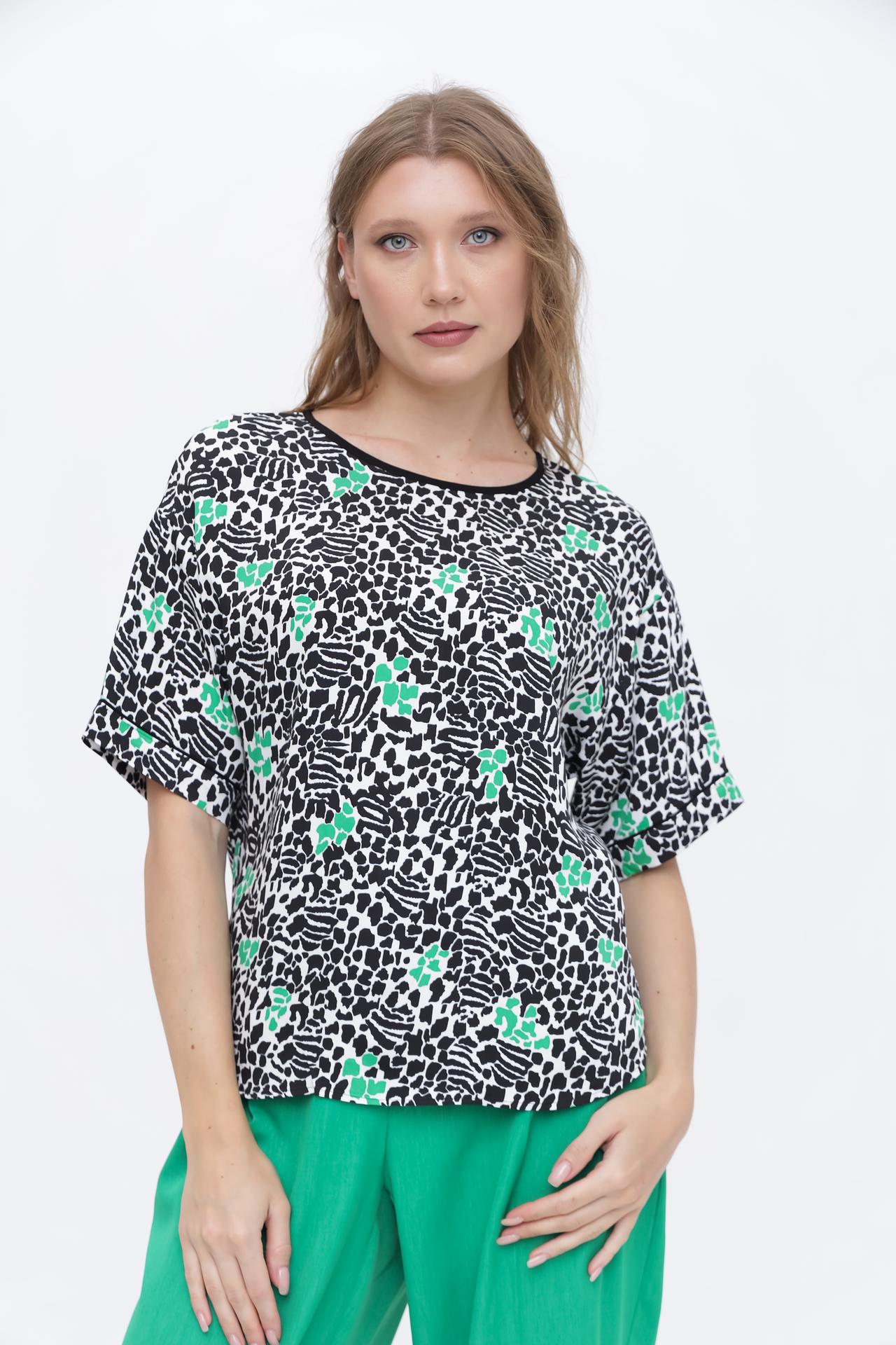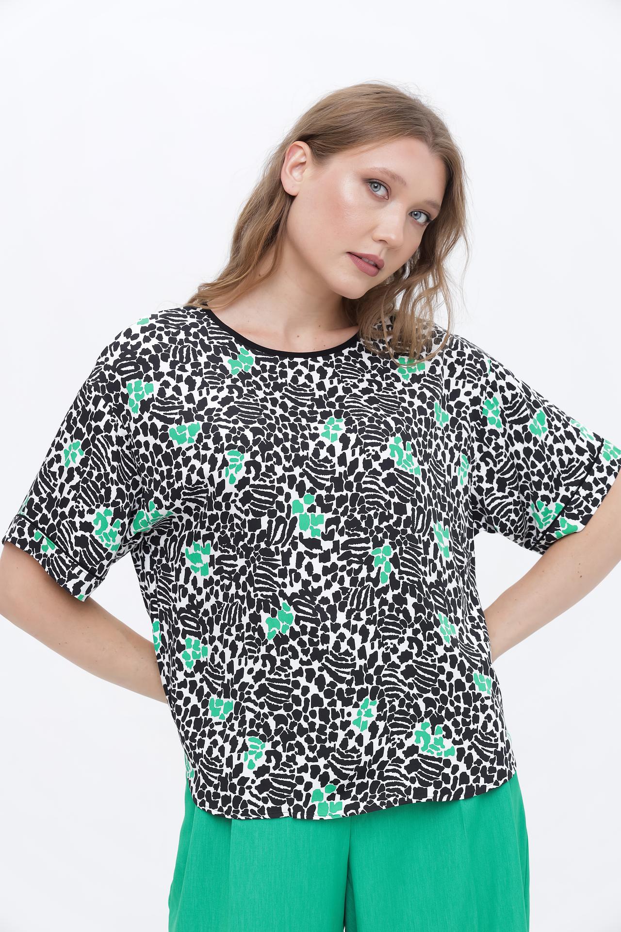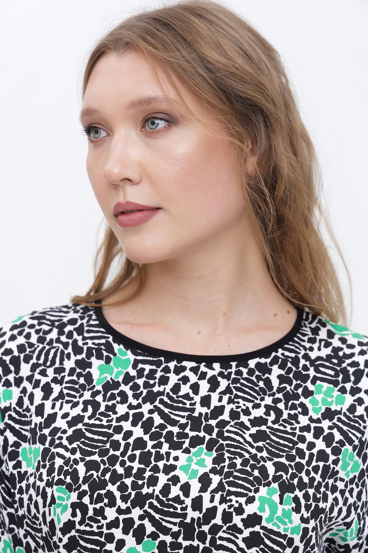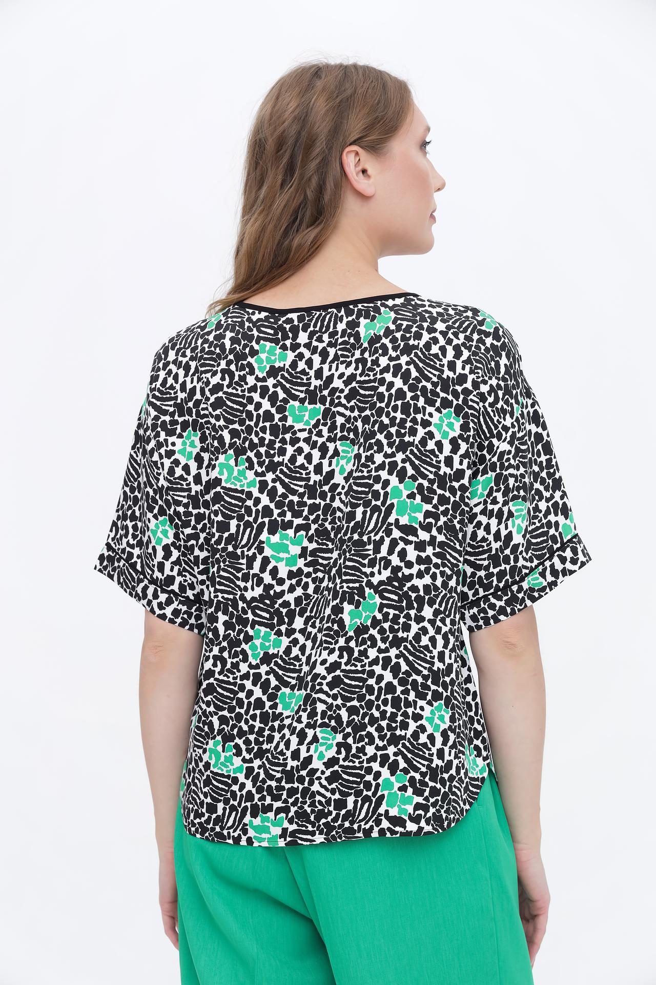Блуза Taifun с черно-белым принтом и зелеными акцентами