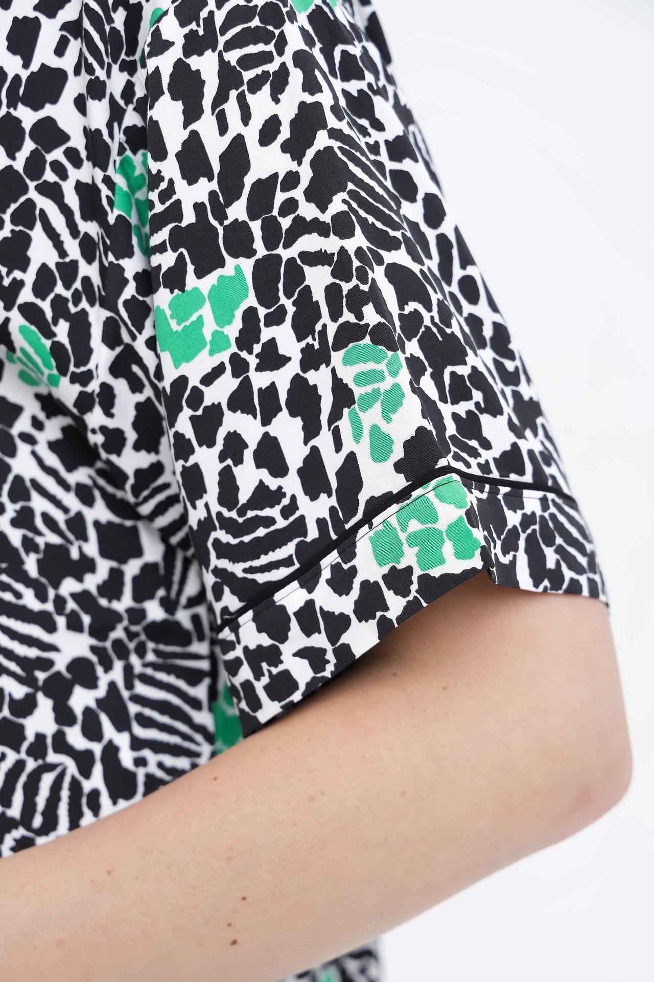 - Универсальный принт. Абстрактный узор в черно-белой гамме с зелеными вставками легко комбинируется с другими цветами и текстурами.