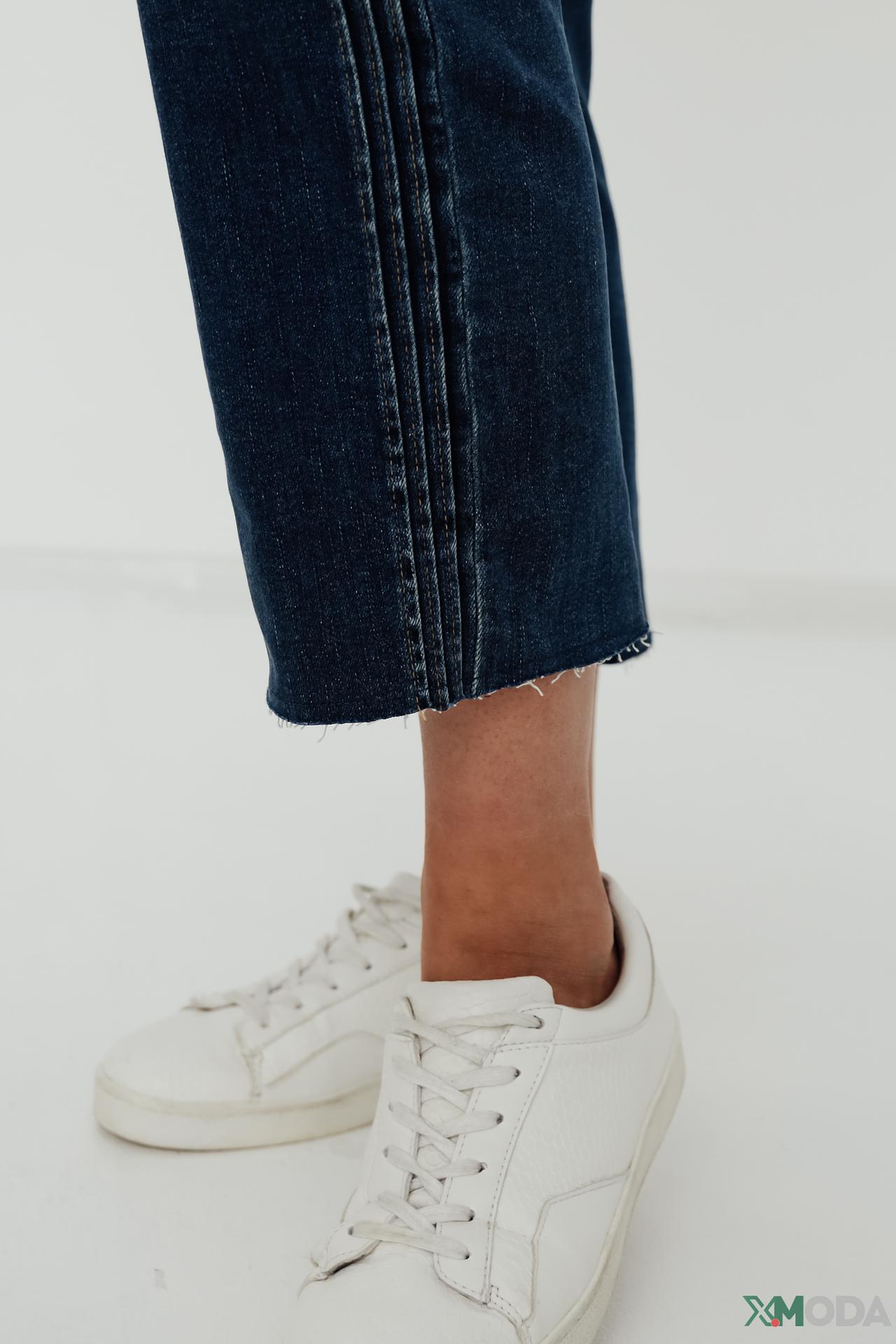 Темно-синий деним – это классика, которая легко сочетается с любым верхом. Необработанный край придает модели современный и стильный вид. Универсальные джинсы женские прямого кроя идеально подходят для создания как повседневных, так и более изысканных образов.