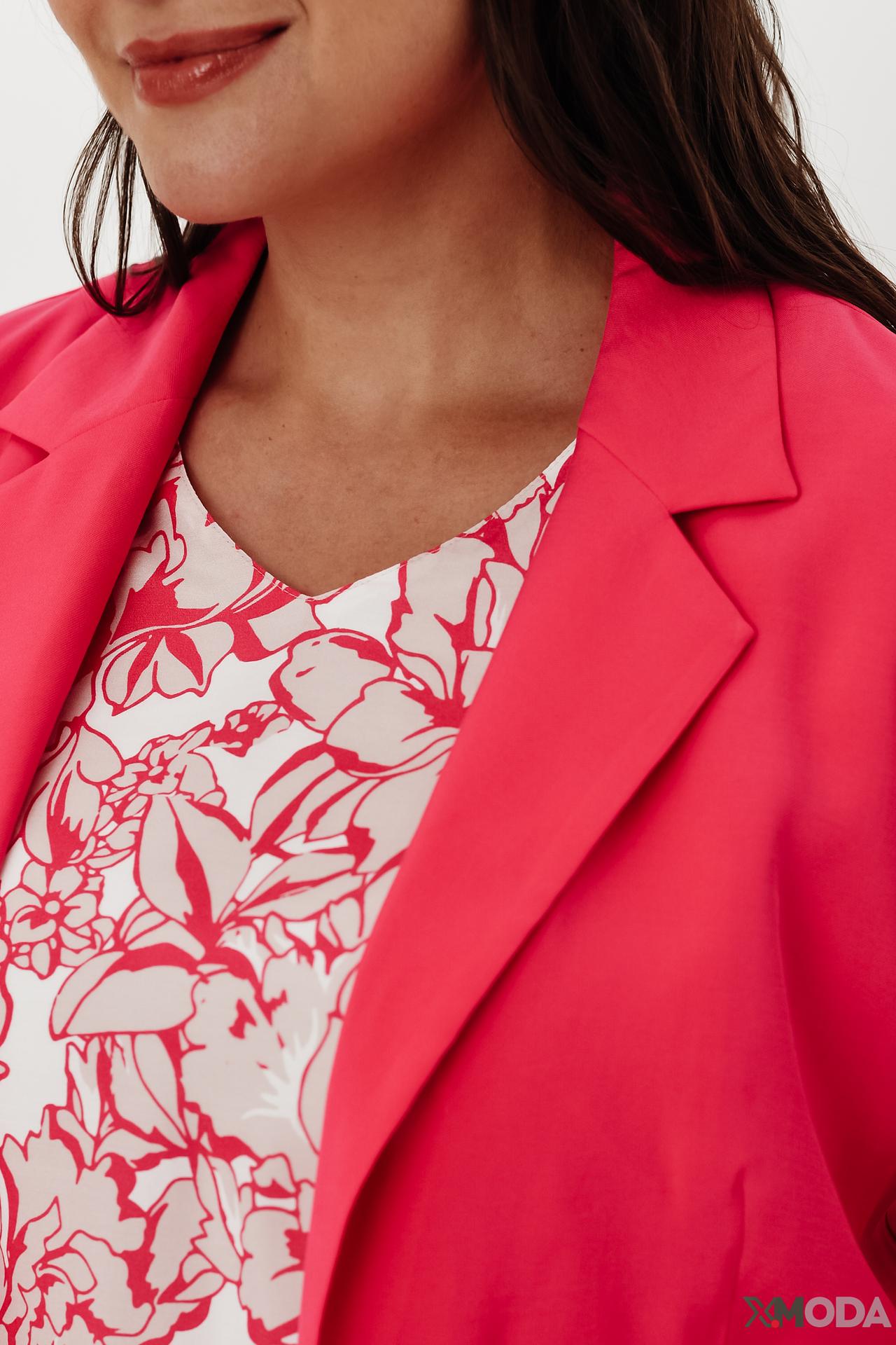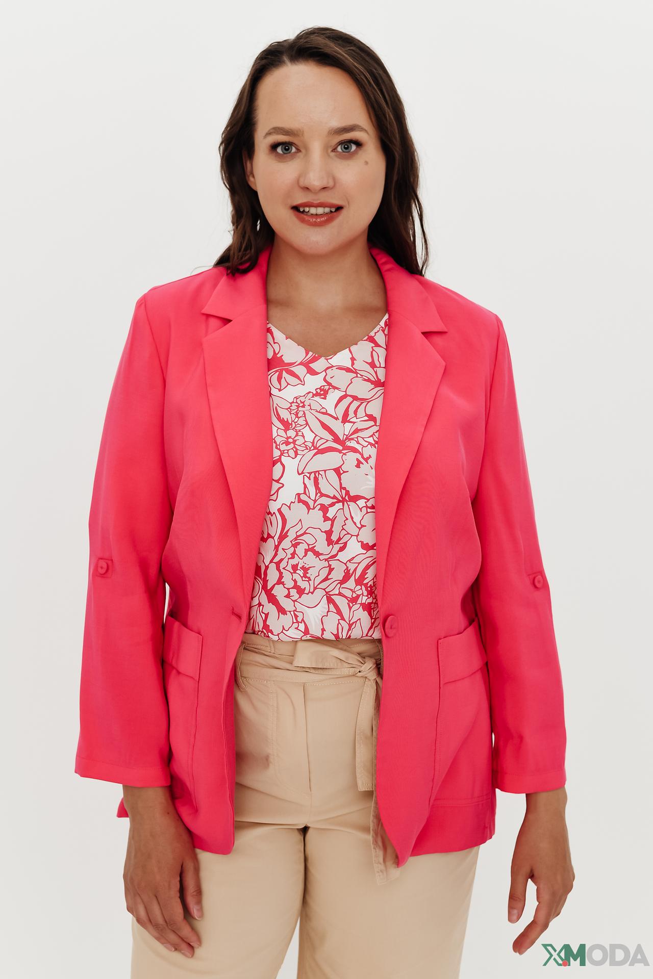Жакет выполнен из ткани, сочетающей в себе мягкость вискозы и практичность полиэстера. Этот материал обеспечивает комфорт в носке и легкость в уходе, что делает жакет незаменимым элементом гардероба.