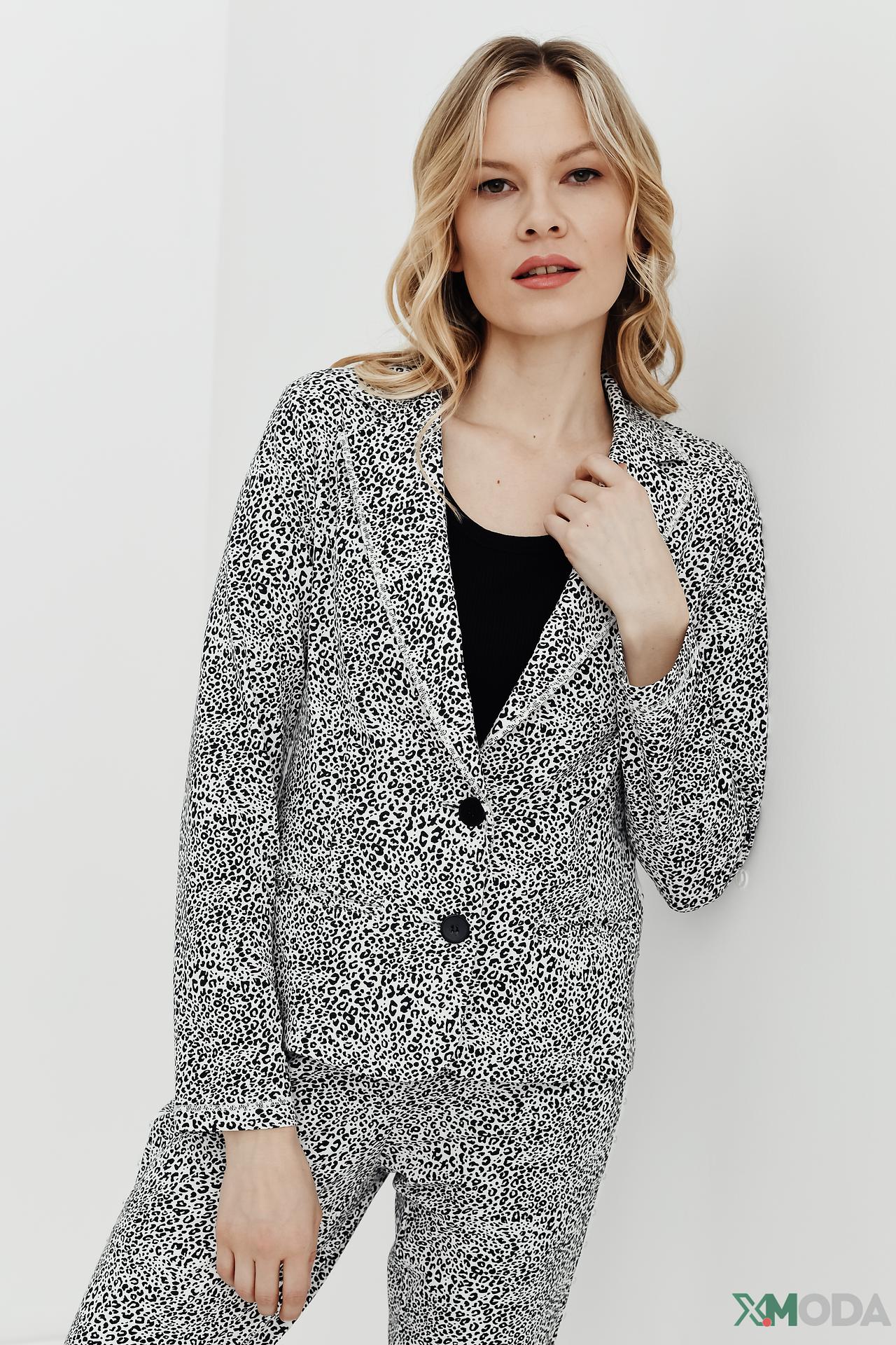 - Модный принт и детали: Яркий леопардовый принт в сочетании с изящной декоративной строчкой выделяет этот жакет из общей массы, создавая запоминающийся и актуальный образ.