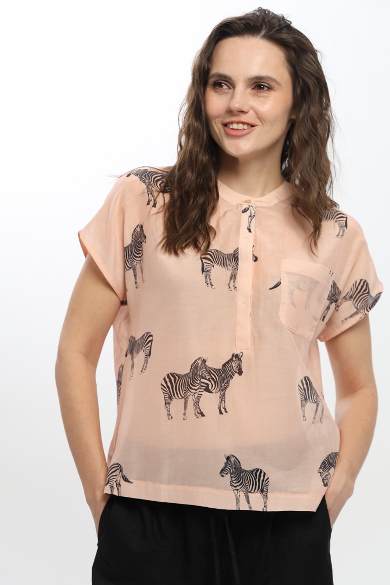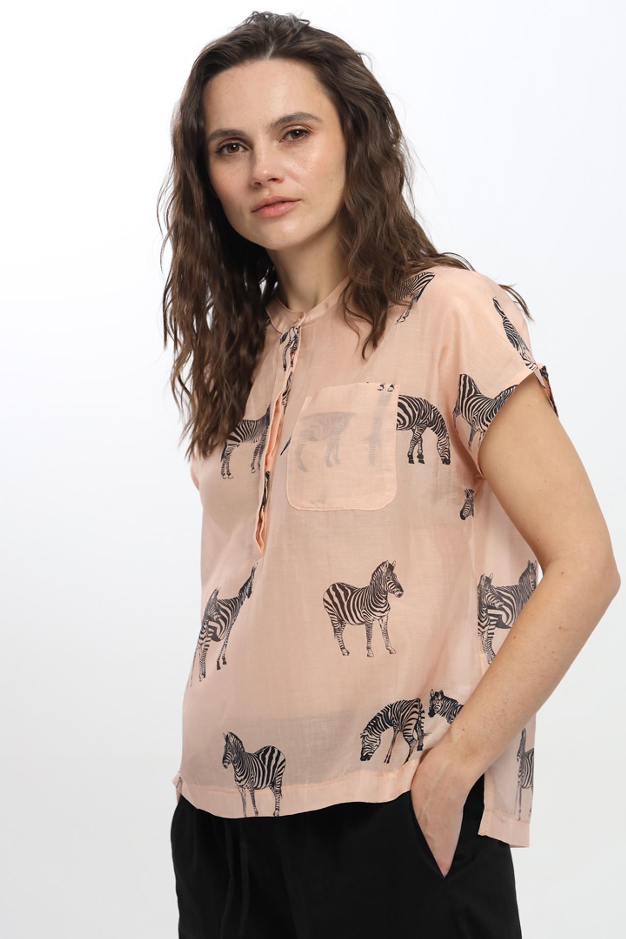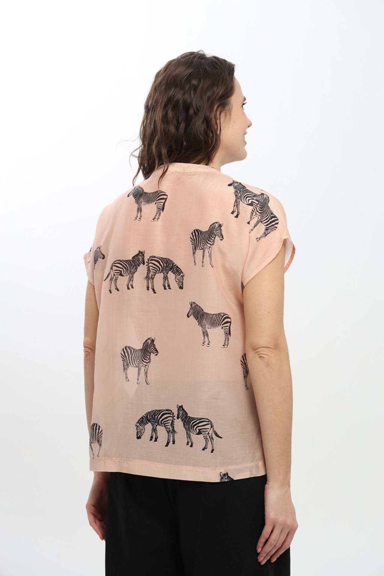Стильная блуза UNQ из высококачественной ткани, которая подарит вам невероятный комфорт. Состав: 80% вискоза, 20% шелк. Изысканный дизайн с принтом зебры и нежным персиковым цветом идеально подойдёт для создания ярких образов.