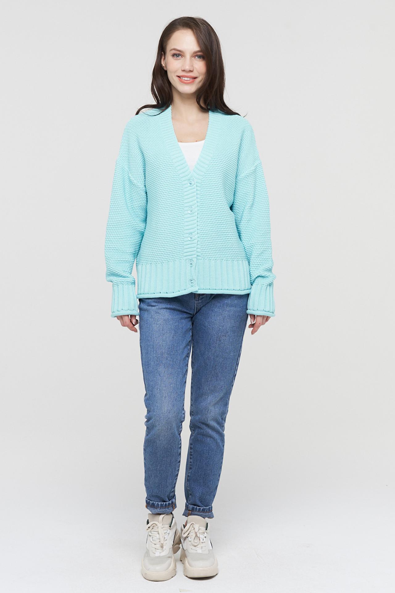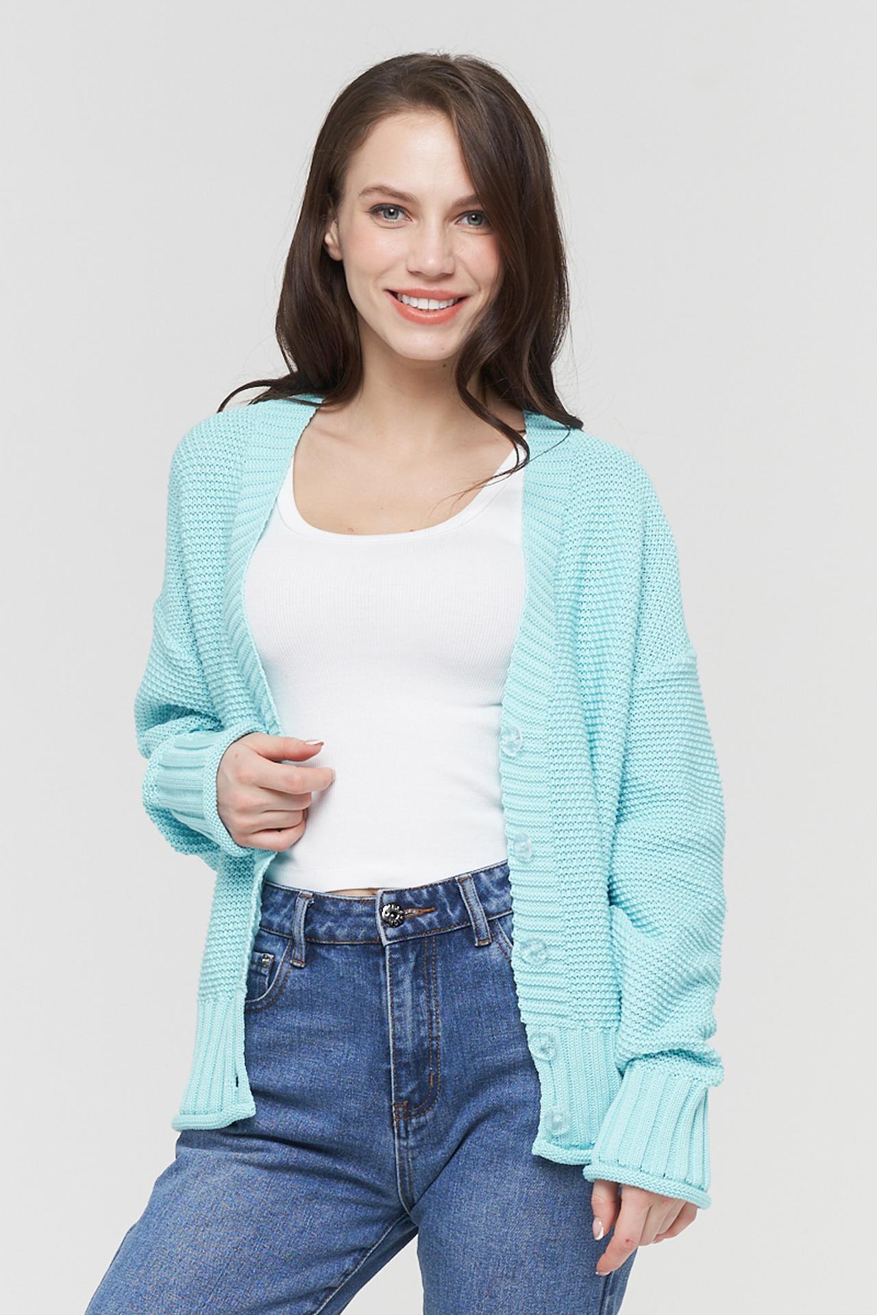 Кардиган VAY бирюзовый вязаный на пуговицах