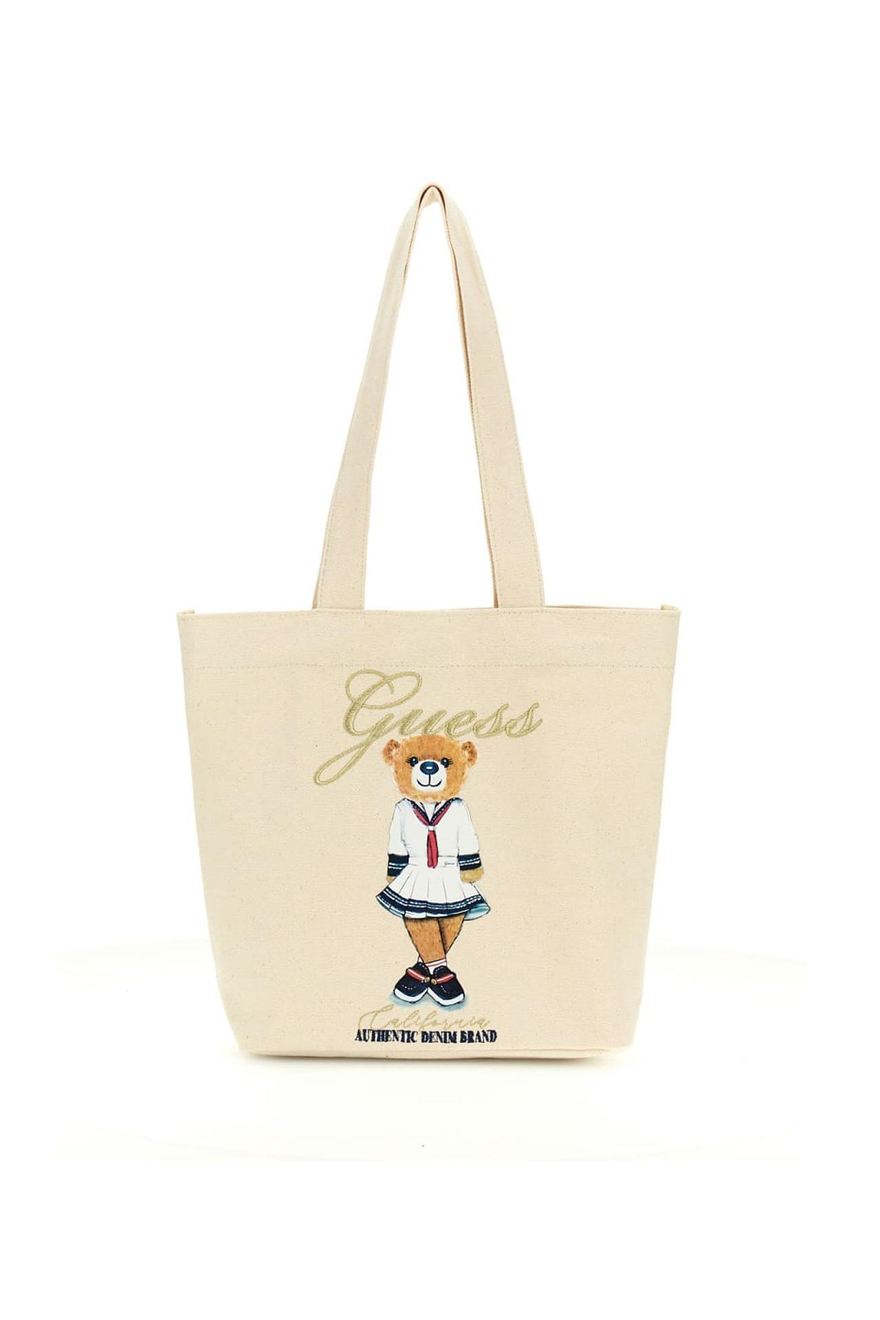 Стильная и удобная детская сумка-шоппер Guess выполнена из 100% натурального хлопка, обеспечивая комфорт и долговечность. Эта очаровательная сумка для девочек украшена ярким принтом с милым медвежонком, который непременно понравится вашей малышке, делая каждый выход особенным.