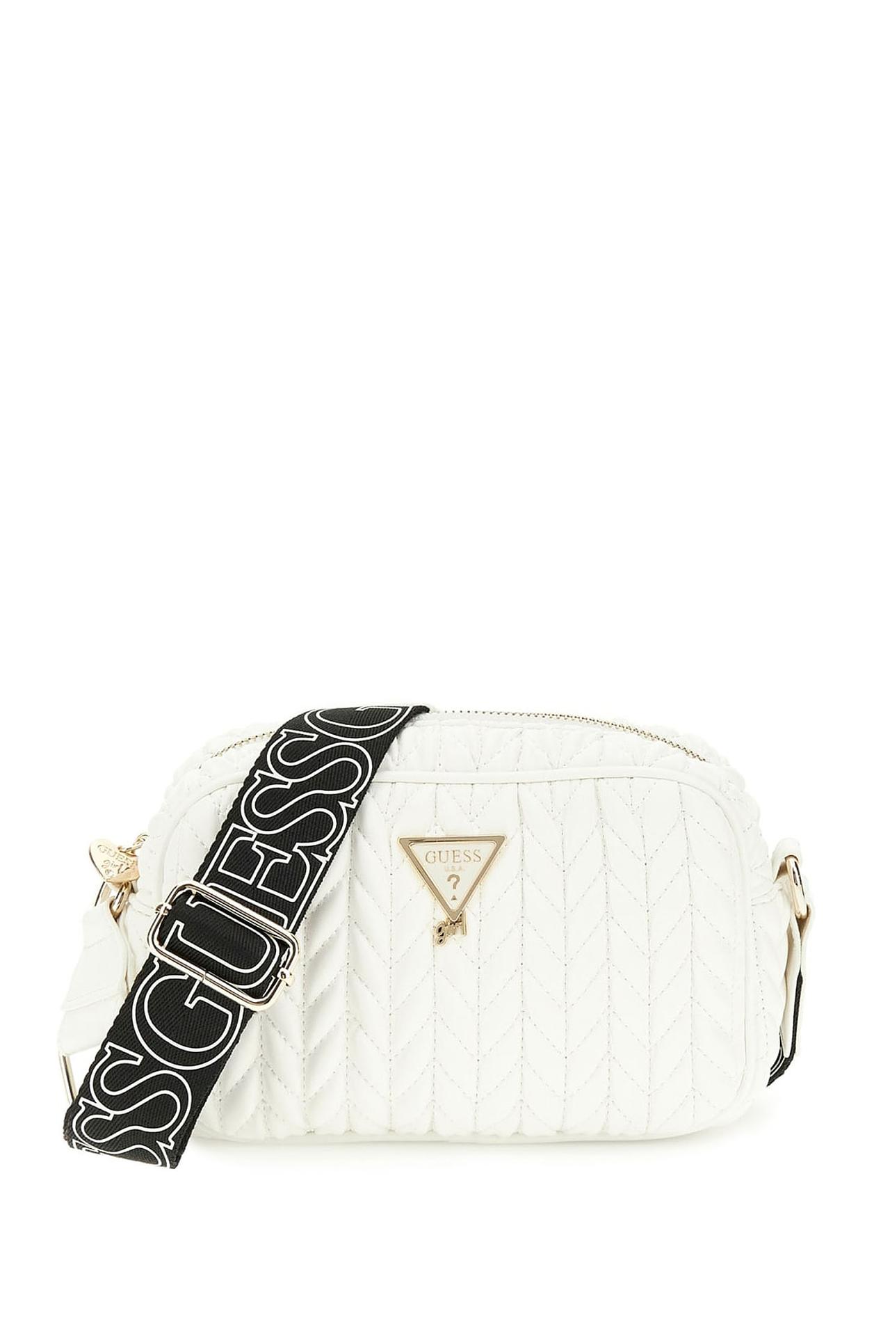 - Дизайн: Оригинальная стеганая текстура и контрастный ремень с логотипом Guess придают сумке модный и узнаваемый вид. Небольшой фирменный логотип-треугольник подчеркивает оригинальность изделия.