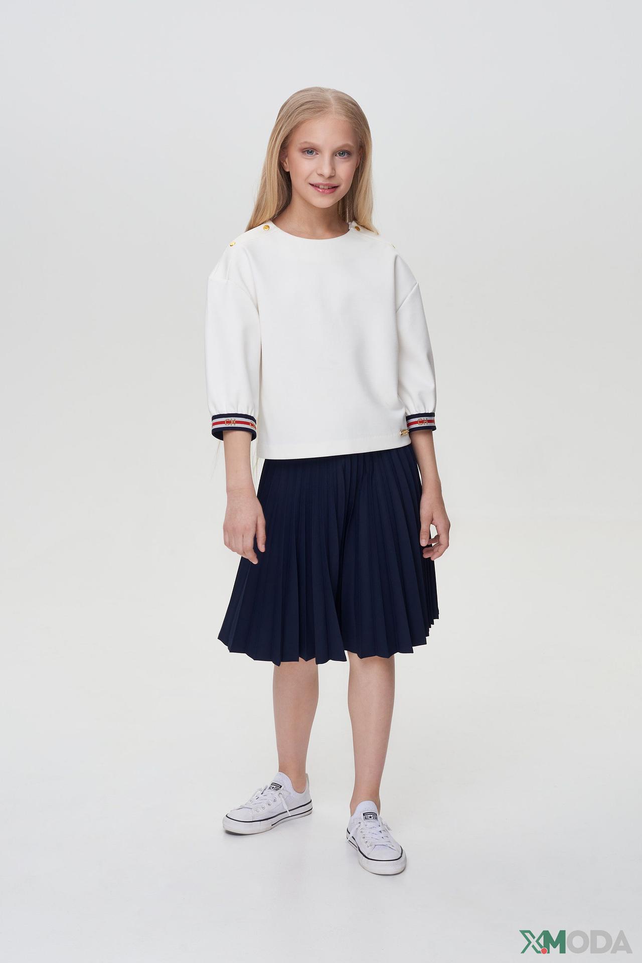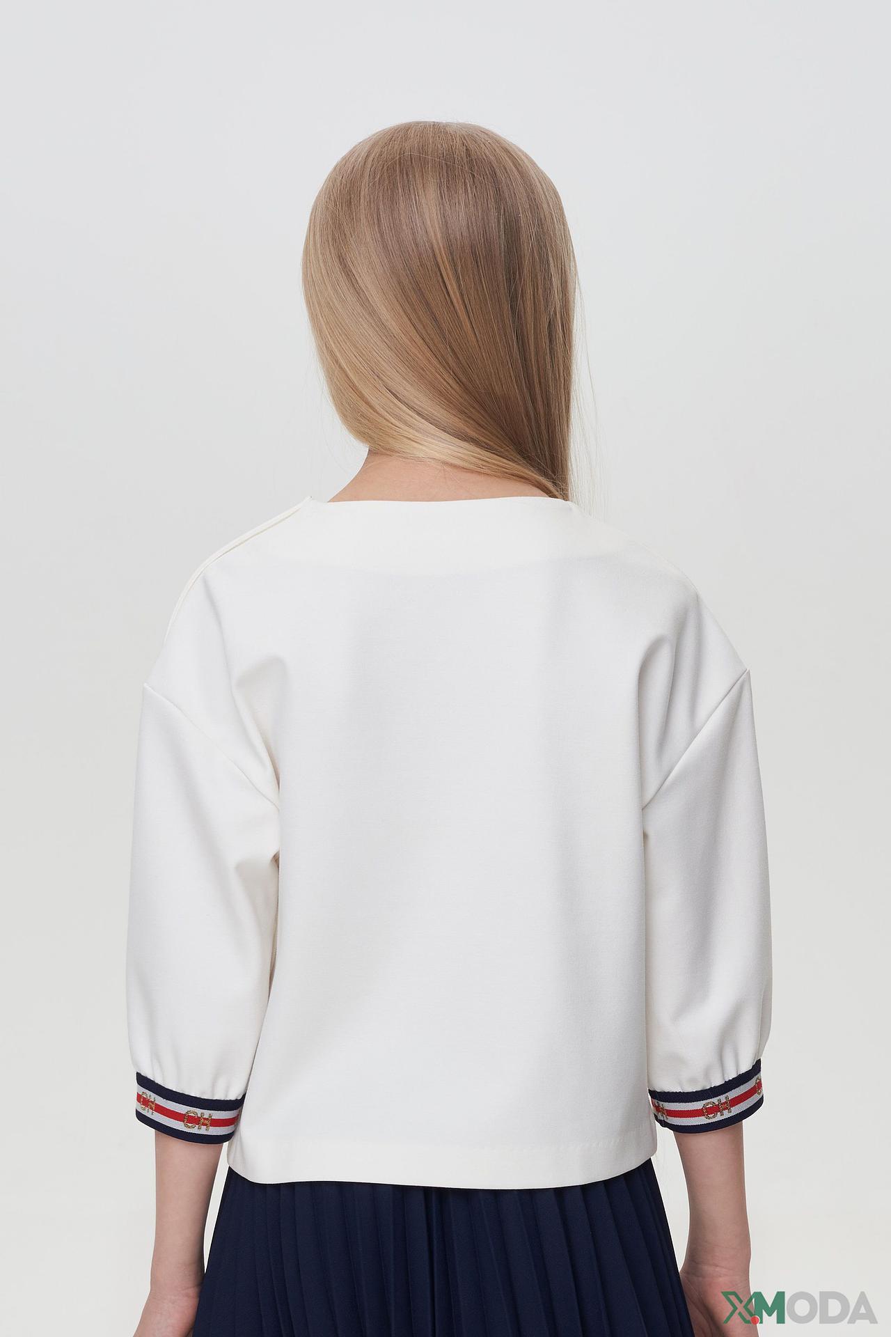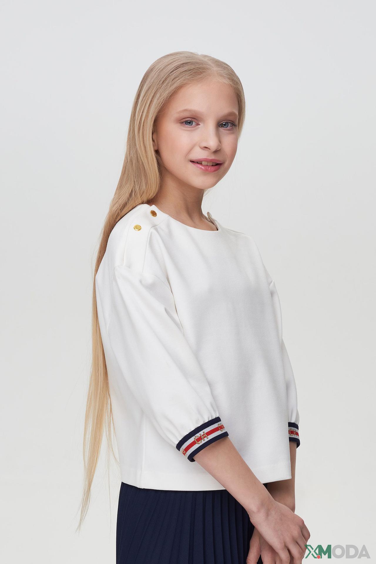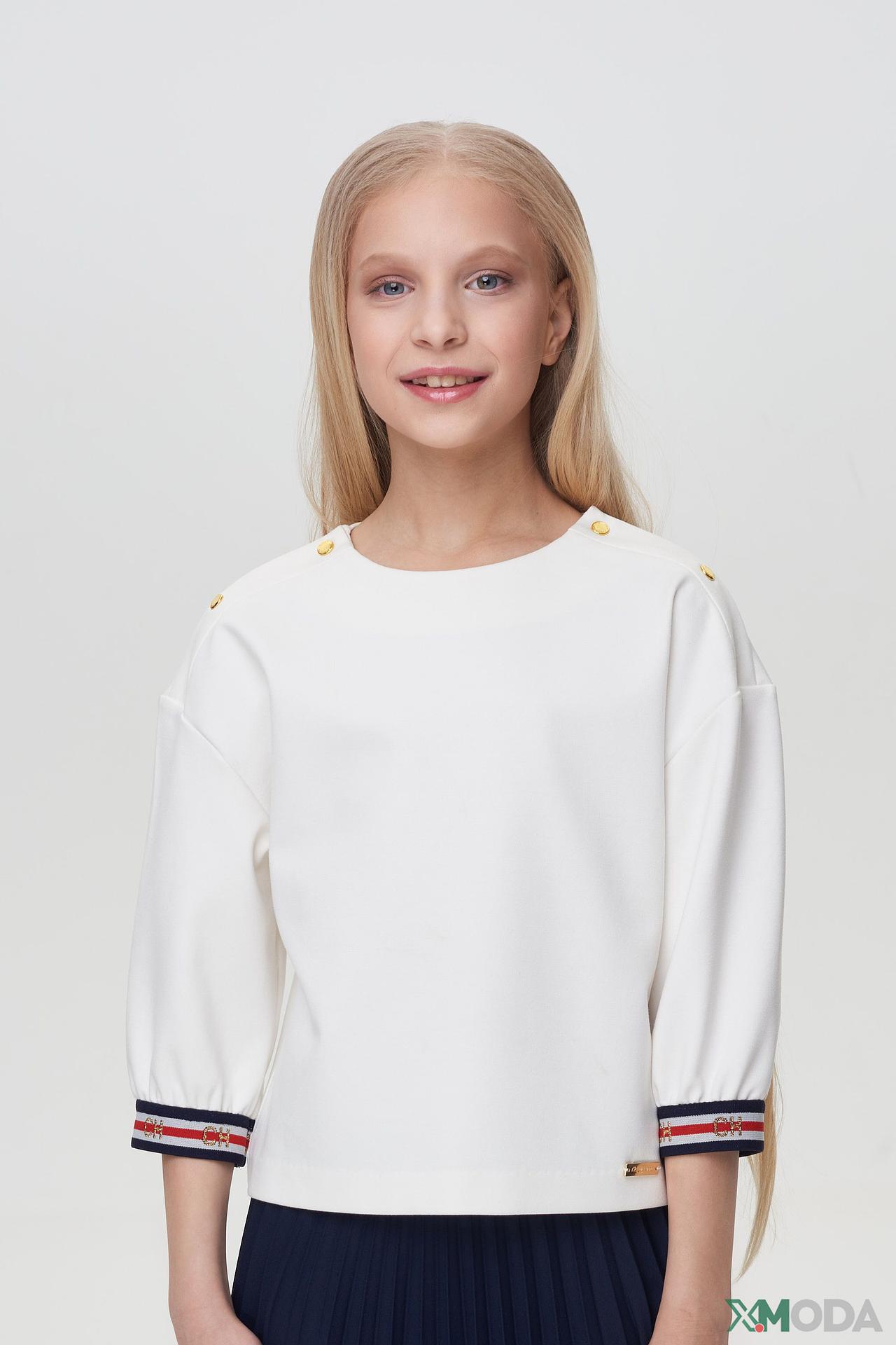 - Детализированные манжеты: Рукава длиной 3/4 завершаются эластичными манжетами, украшенными контрастными полосами в морском стиле. Этот элемент придает блузе динамичности и узнаваемости, выделяя ее среди прочей детской одежды.