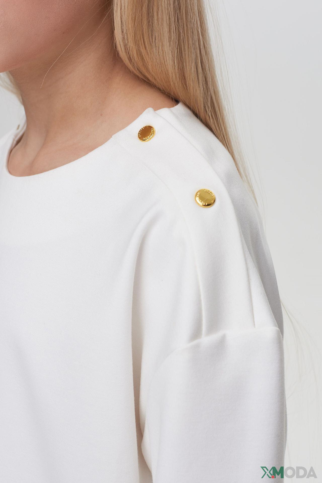 - Элегантный дизайн: Классический крой и чистый белый цвет делают эту блузу универсальной. Золотистые пуговицы на плечах добавляют изысканный акцент, подчеркивая особый стиль изделия.
