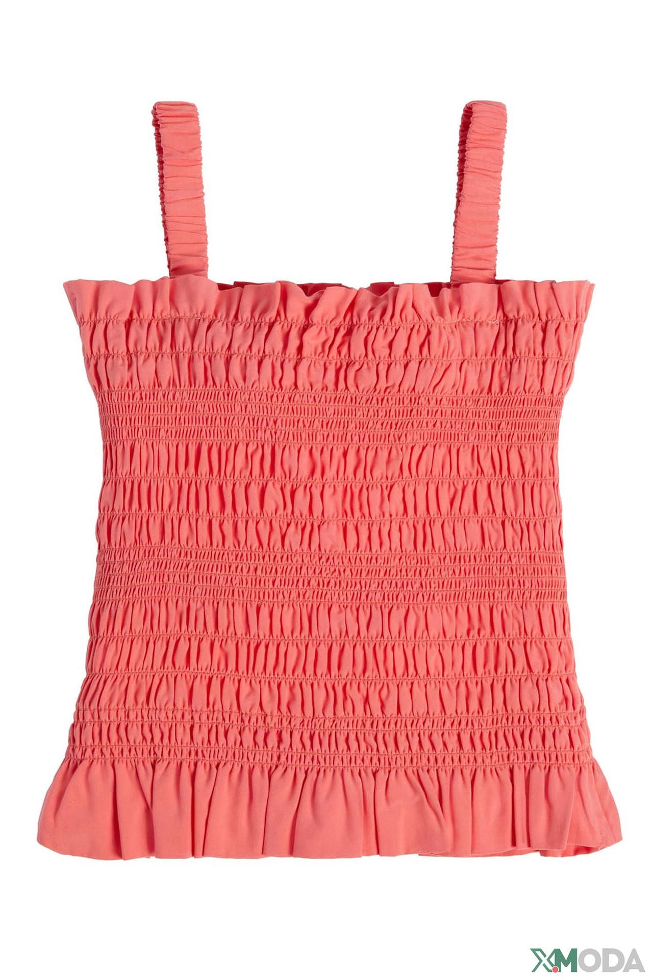 - Дизайн и крой: Блуза выполнена в трендовом стиле с эластичной сборкой по всей длине лифа и низа изделия, что придает ей актуальный вид. Широкие эластичные бретели обеспечивают удобство и надежную фиксацию.