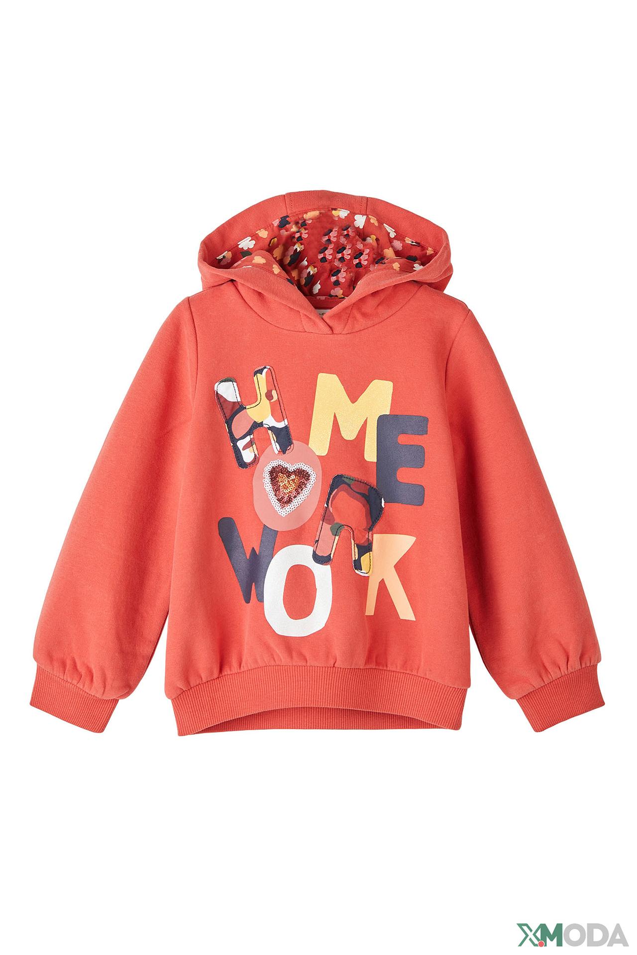 Худи s.Oliver оранжевое с принтом "HOME WORK" и узорным капюшоном