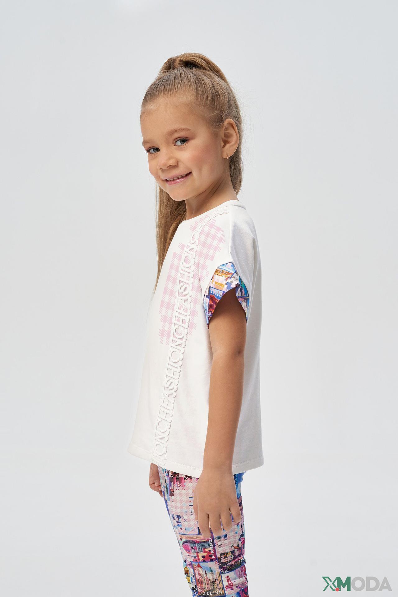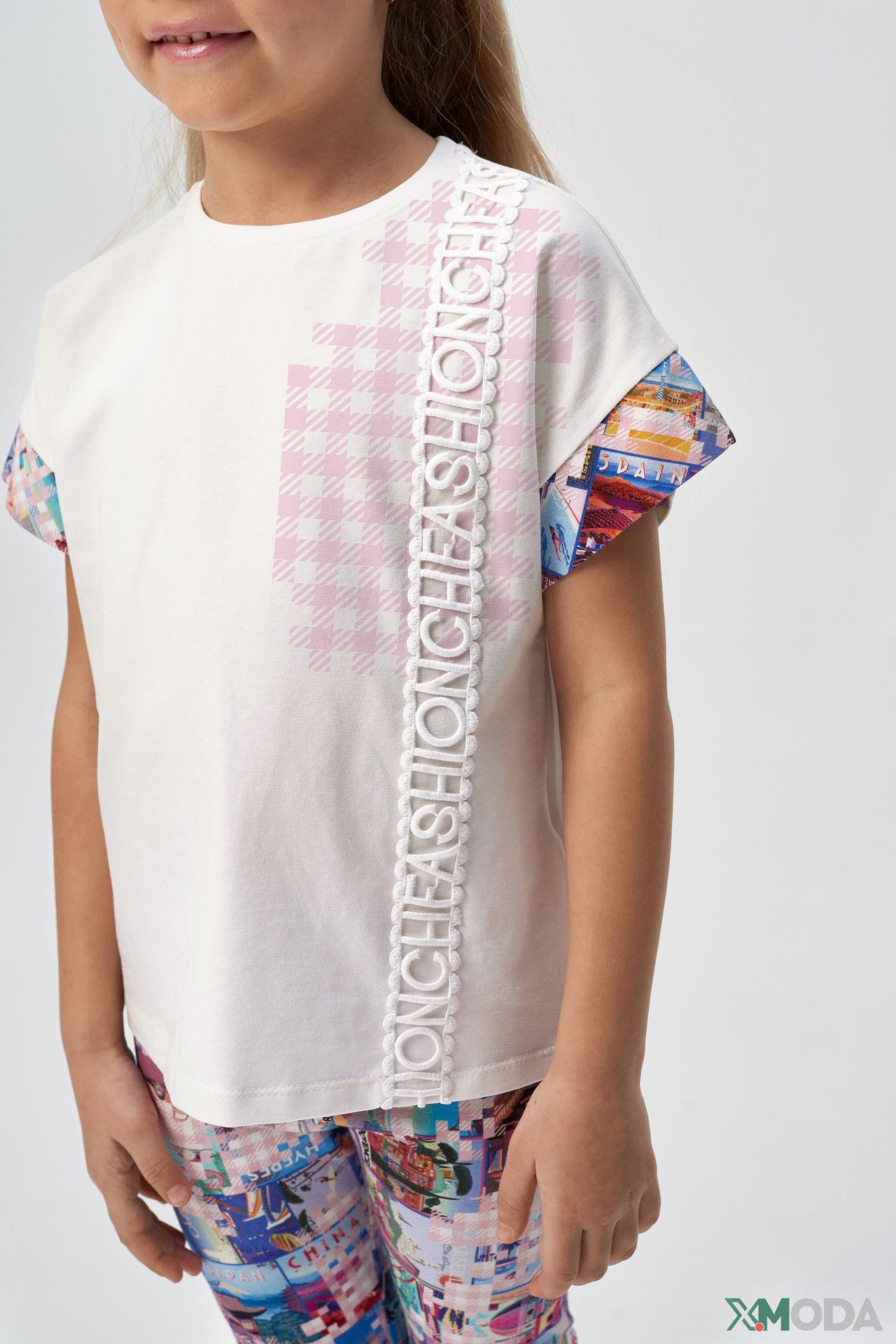 - Цвет: Нежный белый цвет футболки отлично сочетается с разноцветными деталями, делая образ ярким и запоминающимся.