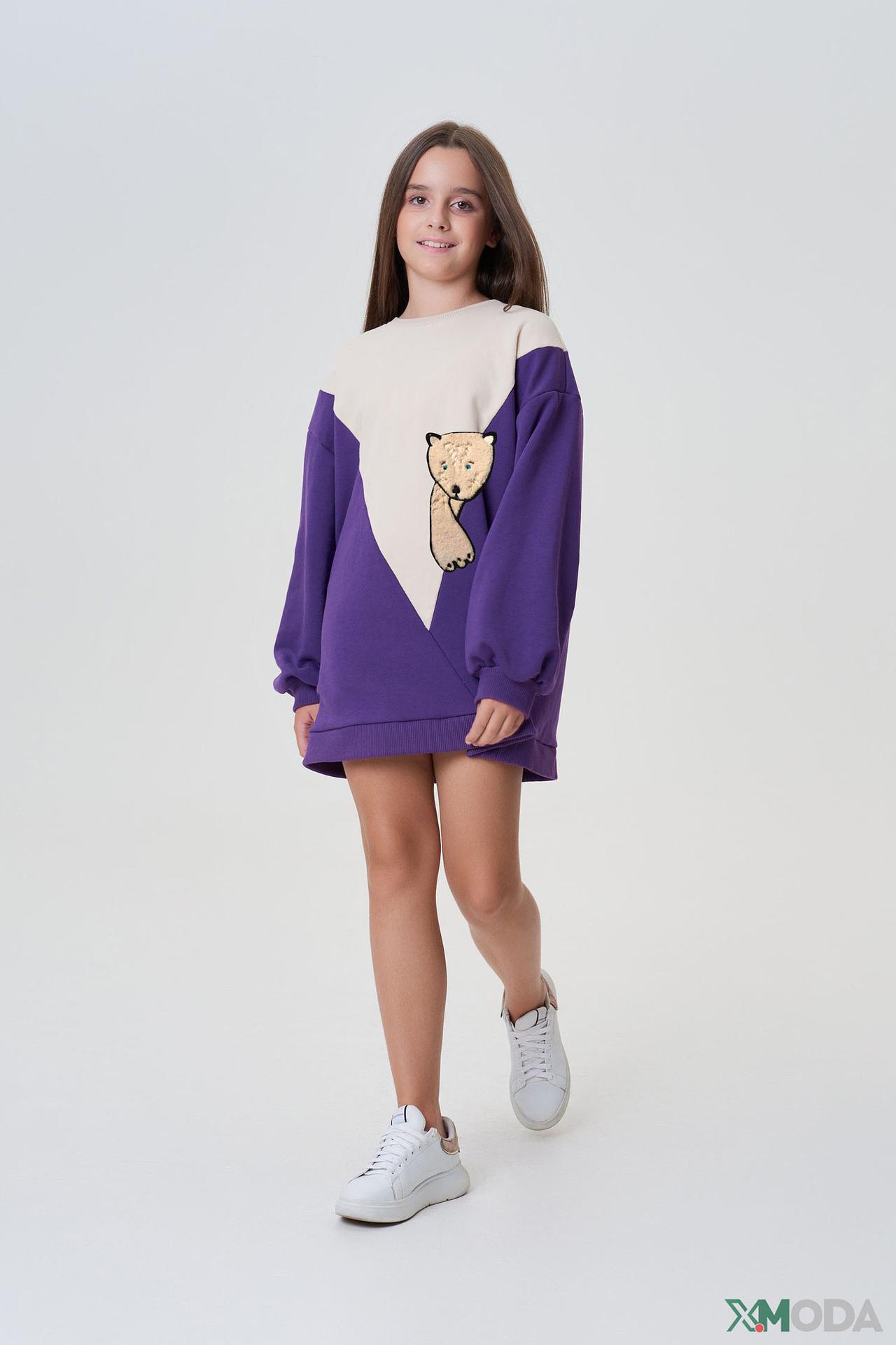 - Дизайн: Оригинальное цветовое решение с диагональными линиями и контрастными вставками. На груди расположен милый принт с изображением медвежонка, который обязательно понравится юным модницам.