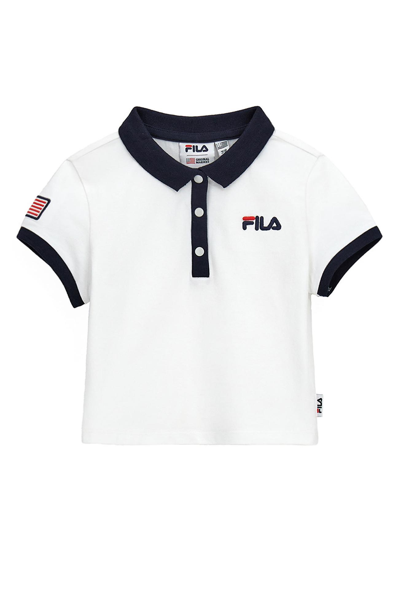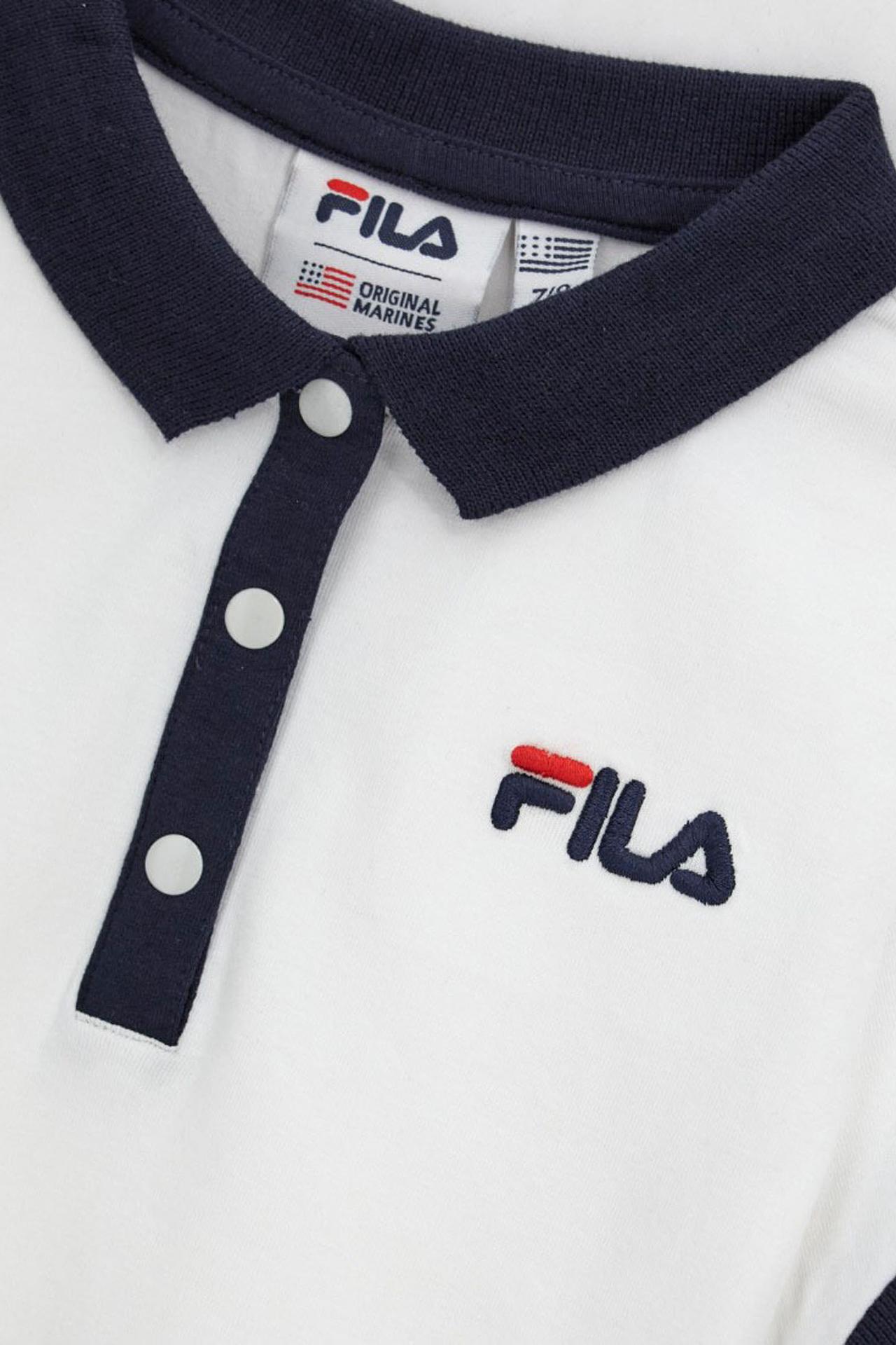 - Стильный дизайн: Классический крой поло дополнен контрастным темно-синим воротником и манжетами, а также элегантной вышивкой логотипа FILA и декоративной нашивкой на рукаве. Это придает изделию спортивный и одновременно нарядный вид.