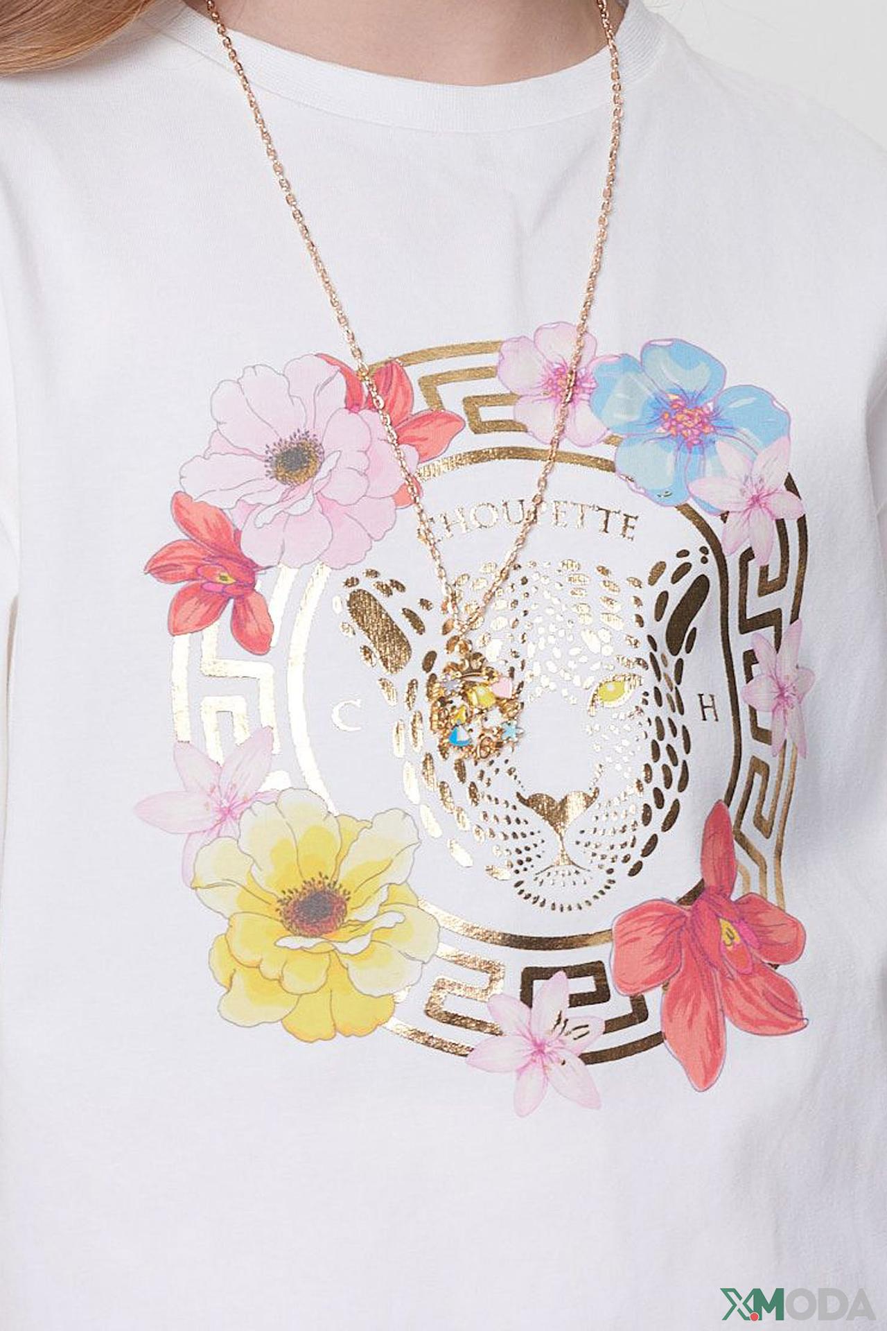 Футболка Choupette белая с принтом леопарда и цветами