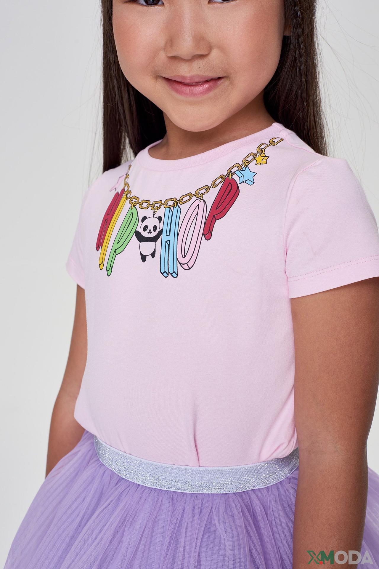 Стильная детская футболка Choupette для девочек, выполненная в нежном розовом цвете. Изделие украшено ярким принтом с надписью "Pandaparty", дополненной подвесками и звездами, что придает образу игривости и оригинальности. Эта футболка идеально подойдет для создания повседневных и нарядных образов, сочетаясь как с юбками, так и с брюками.