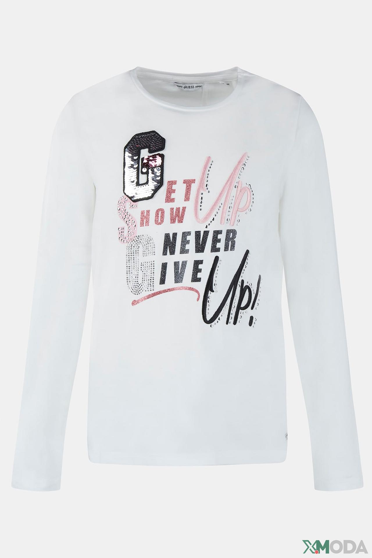 Лонгслив Guess белый с надписью для девочки