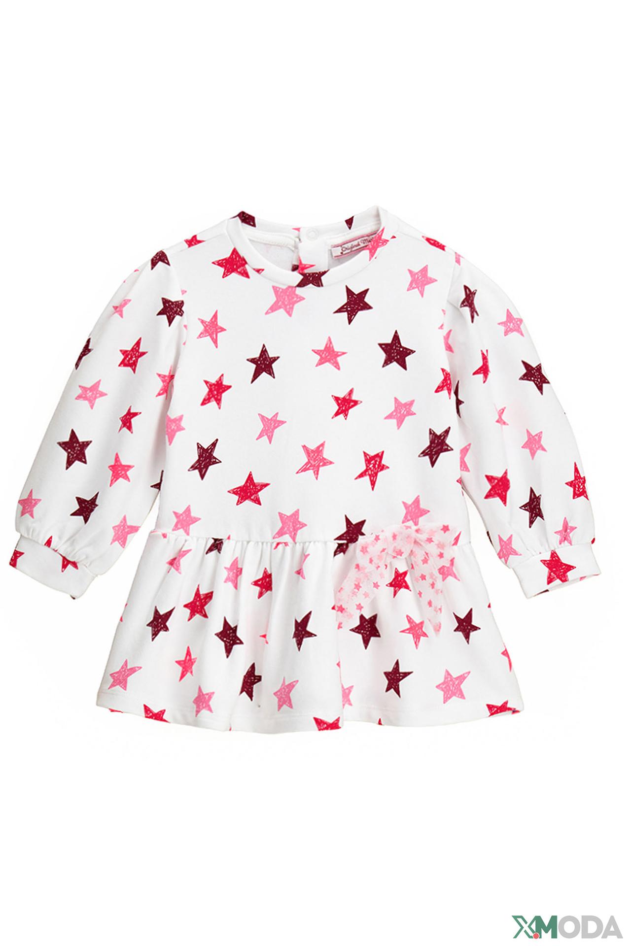Платье Original Marines для девочки, белое со звёздами и бантиком