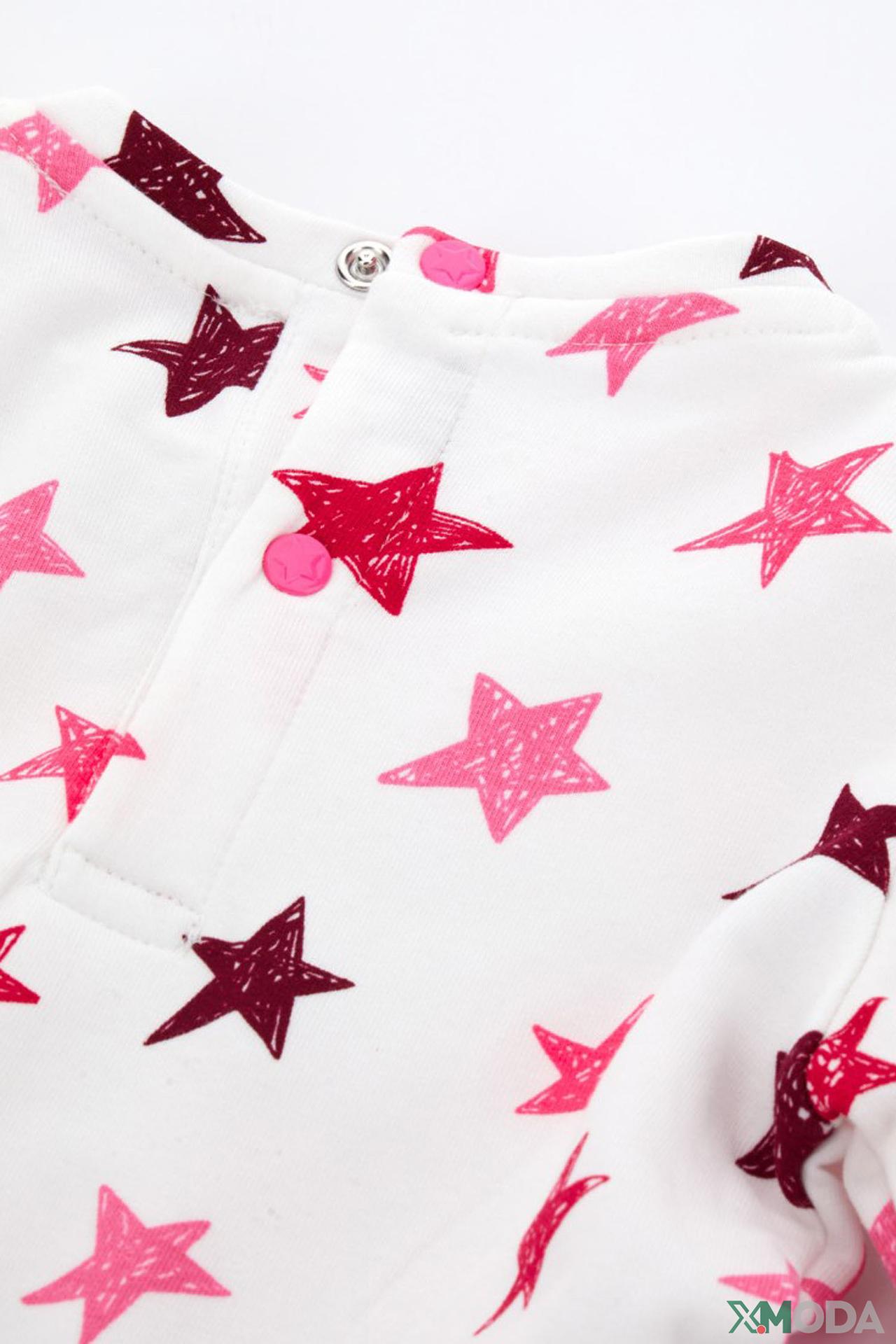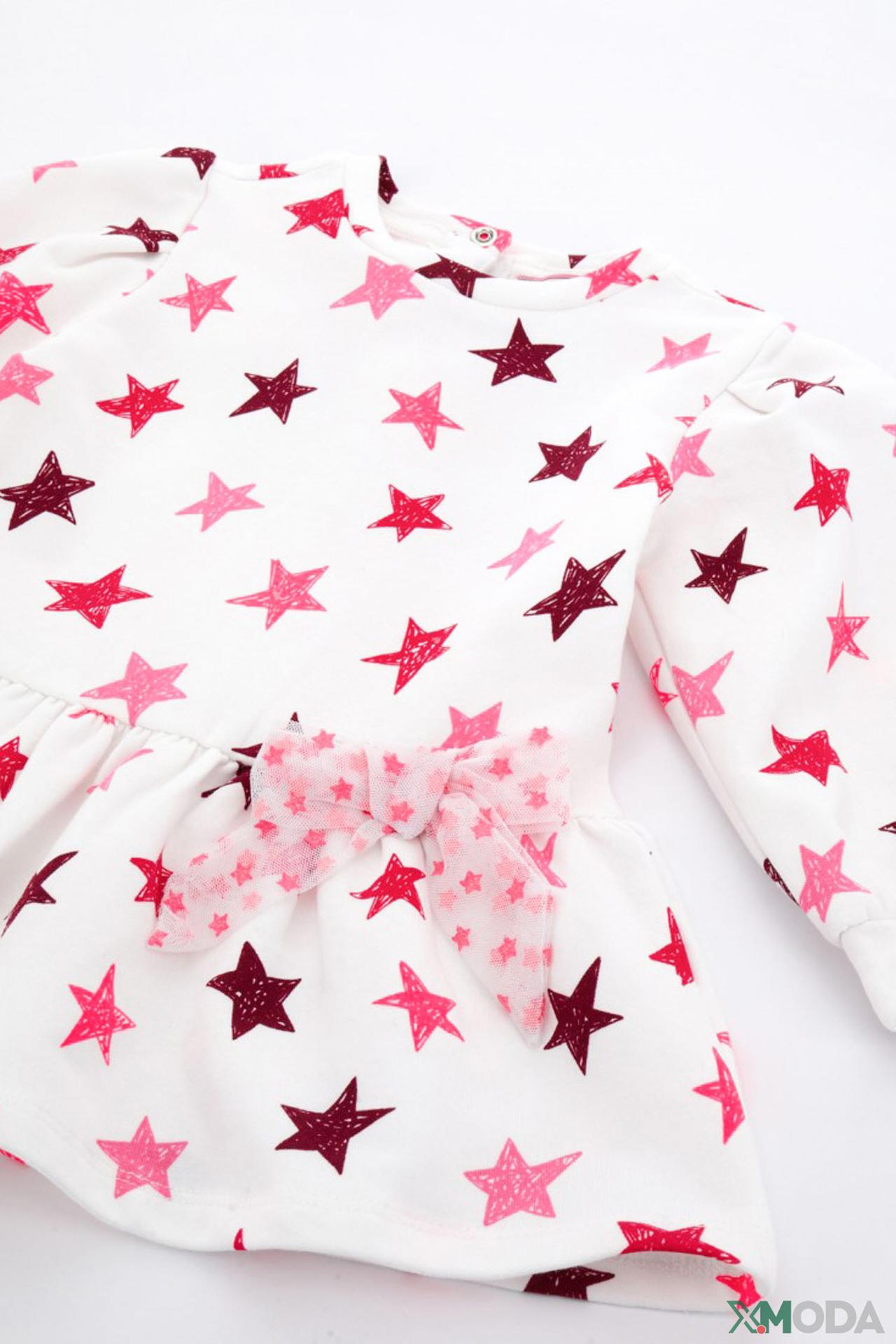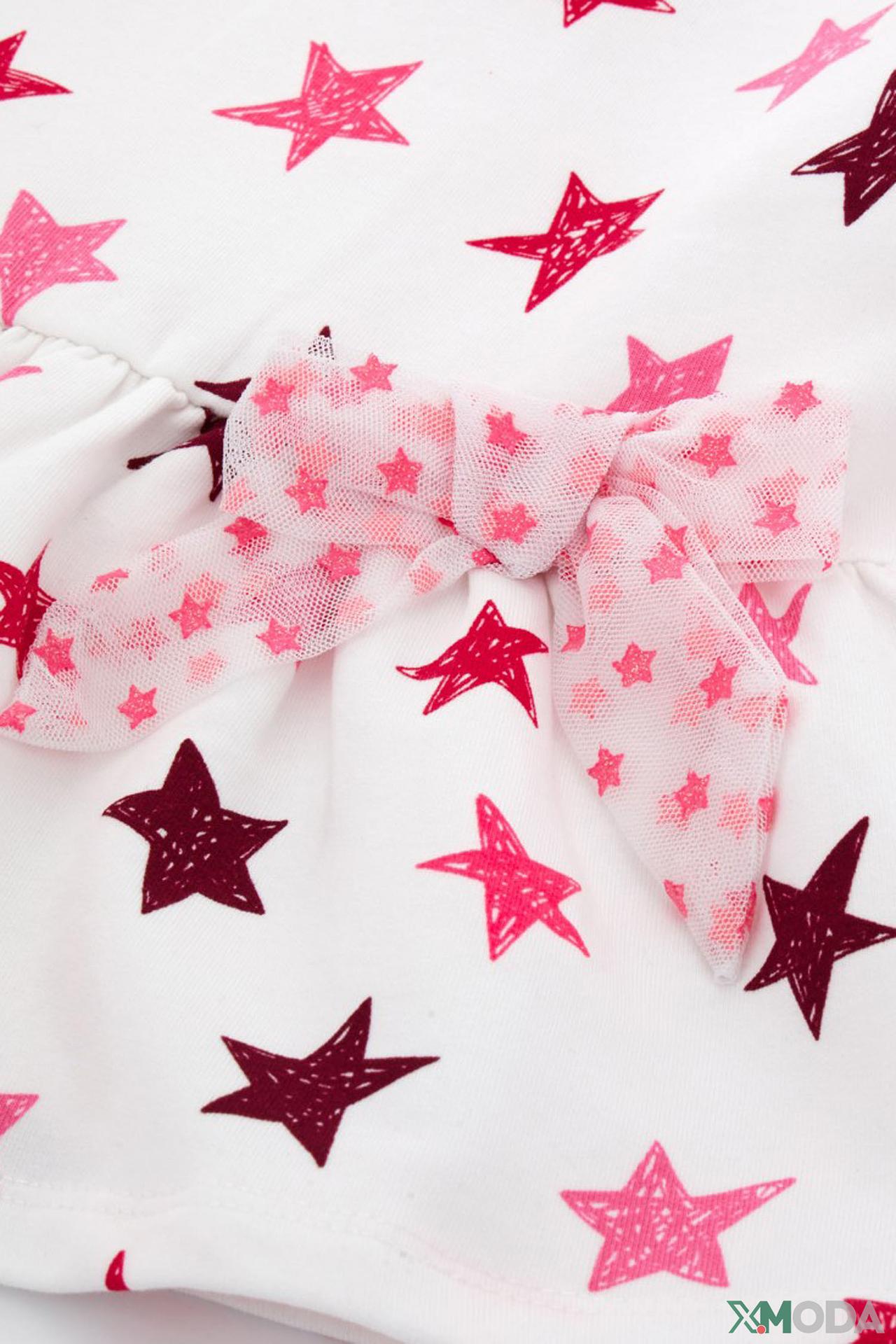 - Оригинальный дизайн. Принт в виде звёзд различных оттенков красного и розового, а также милый бантик из фатина создают запоминающийся и модный образ.