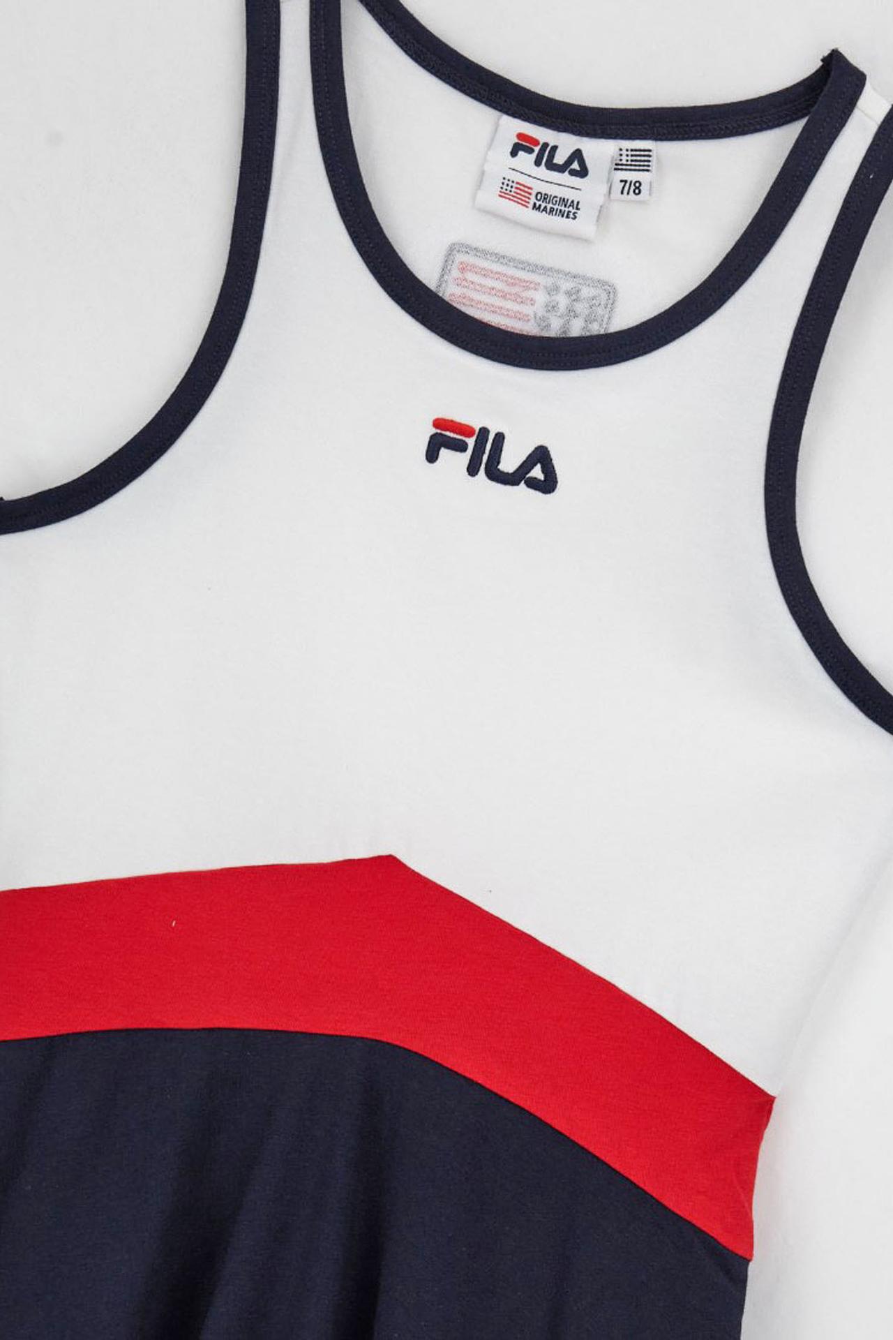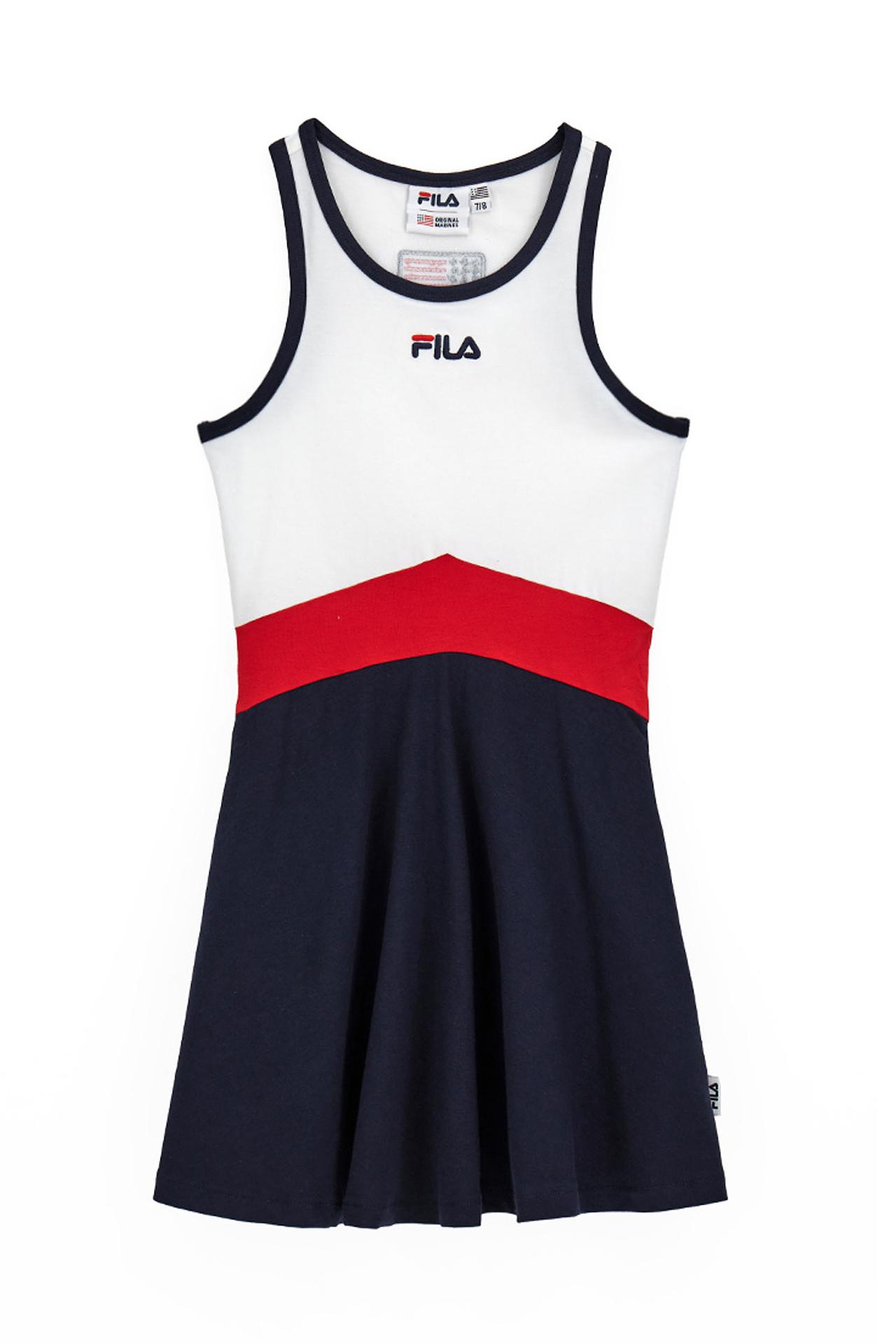 - Детализация: Оригинальный логотип FILA и нашивка-флаг добавляют уникальности и узнаваемости бренду, подчеркивая спортивный характер платья.