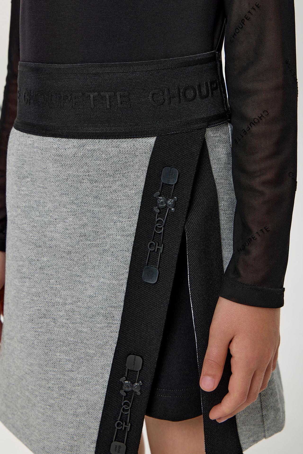 Стильная юбка Choupette – идеальный выбор для маленькой модницы. Модель выполнена в универсальном сером цвете и дополнена контрастными черными элементами, такими как декоративные молнии и пояс с логотипом бренда. Дизайн юбки обеспечивает комфорт и свободу движений, а благодаря продуманному крою она прекрасно сочетается с различной одеждой.