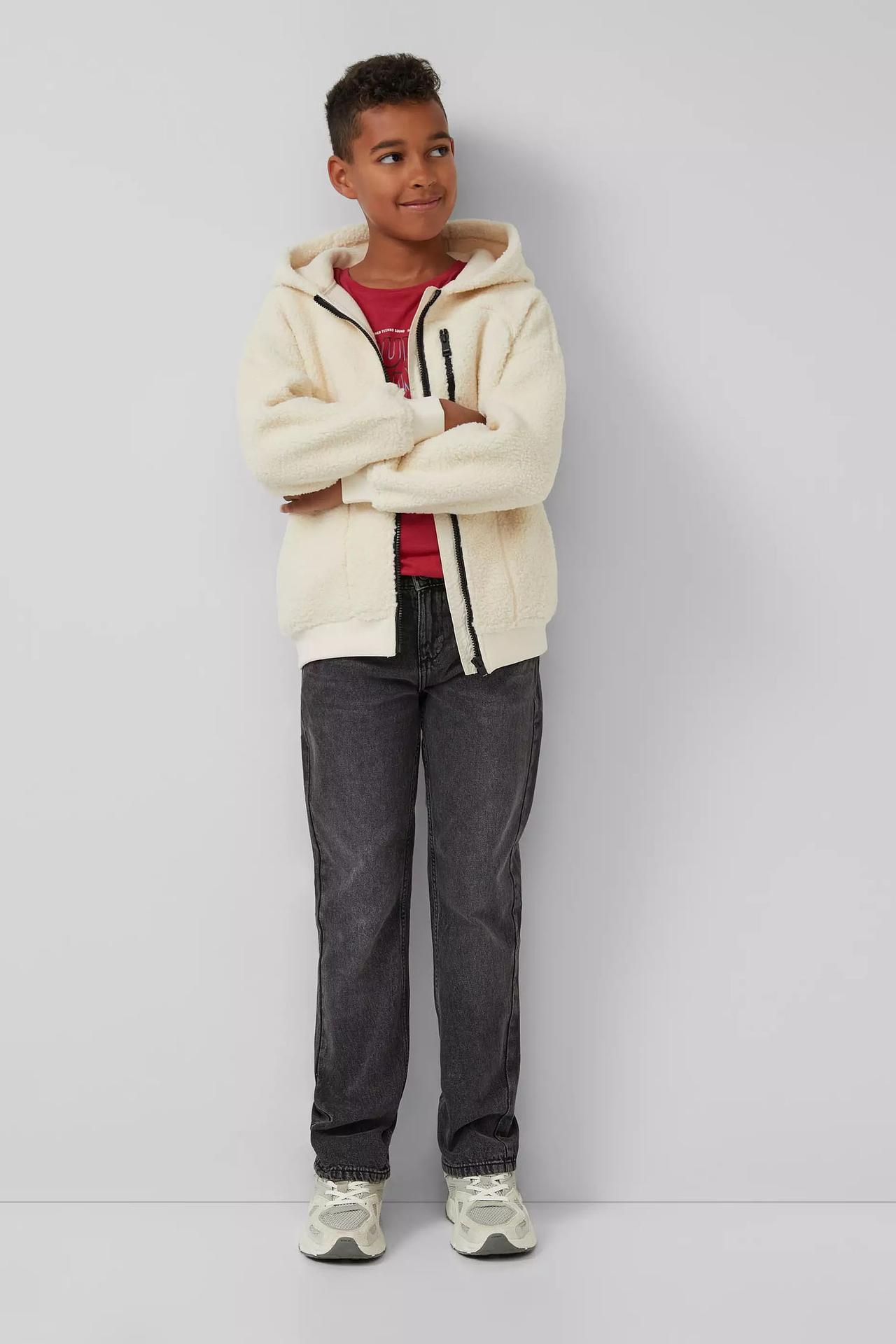 Изготовленные из 100% хлопка, эти брюки обеспечивают мягкость и воздухопроницаемость, что особенно важно для детской кожи. Классический прямой крой и универсальный серый цвет делают их подходящими для любого случая, будь то повседневные прогулки или особые мероприятия. Прочный деним прослужит долго, а стильный винтажный эффект придаст образу актуальности.