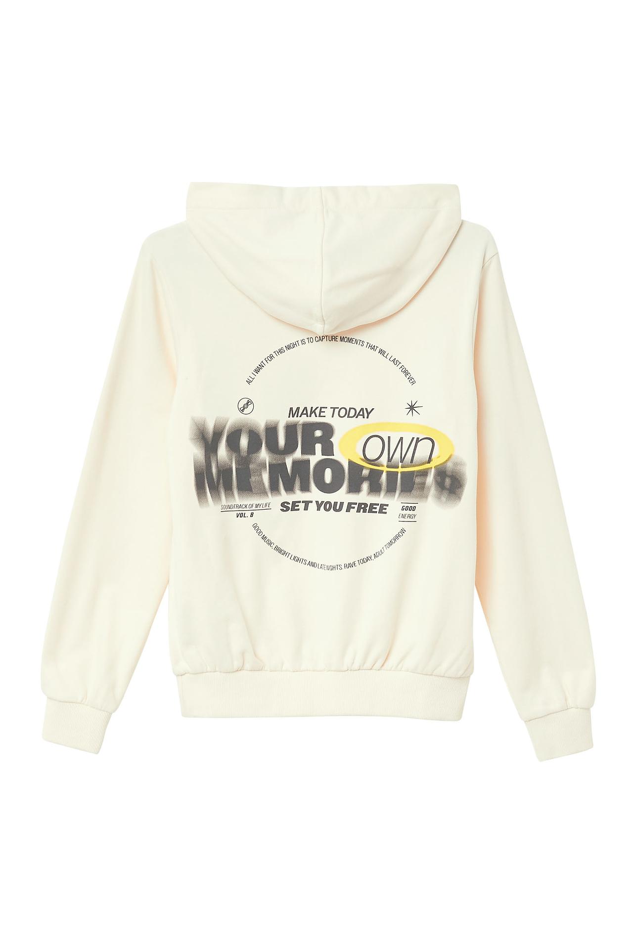 - Дизайн: Классическое худи с капюшоном, регулируемым шнурком, длинными рукавами и эластичными манжетами. Оригинальный принт на груди "SOUNDTRACK OF MY LIFE VOL. 8" и более крупный принт на спине "MAKE TODAY YOUR OWN" добавляют современный акцент.