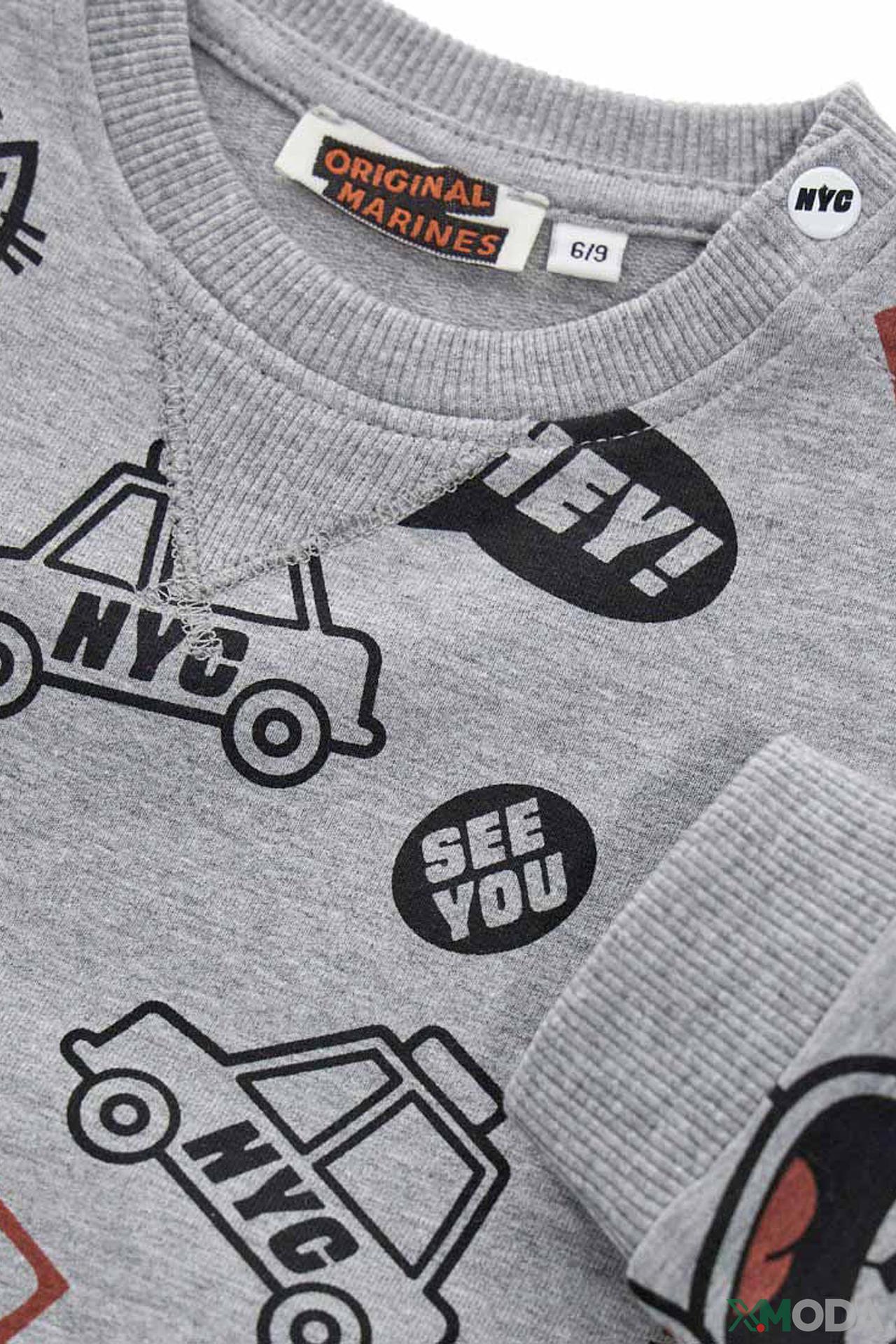 Стильный серый джемпер от Original Marines создан специально для активных и любознательных мальчишек. Яркий принт с забавными котиками, машинками и надписями "HELLO", "NYC", "SEE YOU" поднимет настроение и сделает образ вашего малыша неповторимым. Этот джемпер идеально подойдет для повседневной носки, прогулок и игр, обеспечивая комфорт и свободу движений.