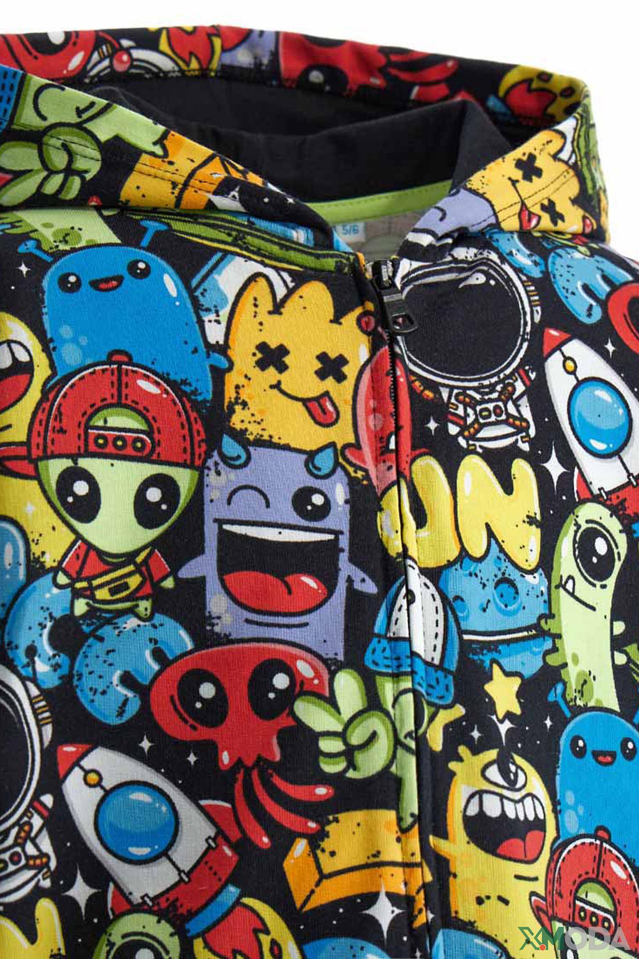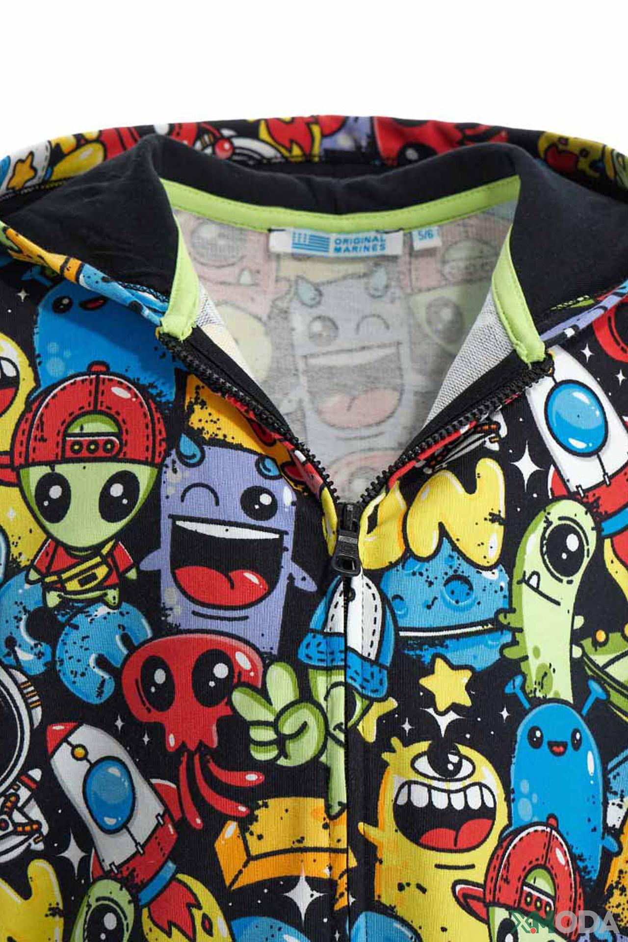 Подарите своему ребёнку яркое настроение с детской толстовкой Original Marines! Этот комфортный и стильный джемпер на молнии идеально подходит для ежедневных приключений. Яркий, детализированный принт с забавными монстрами, инопланетянами и космонавтами на чёрном фоне превращает каждую прогулку в увлекательную игру.