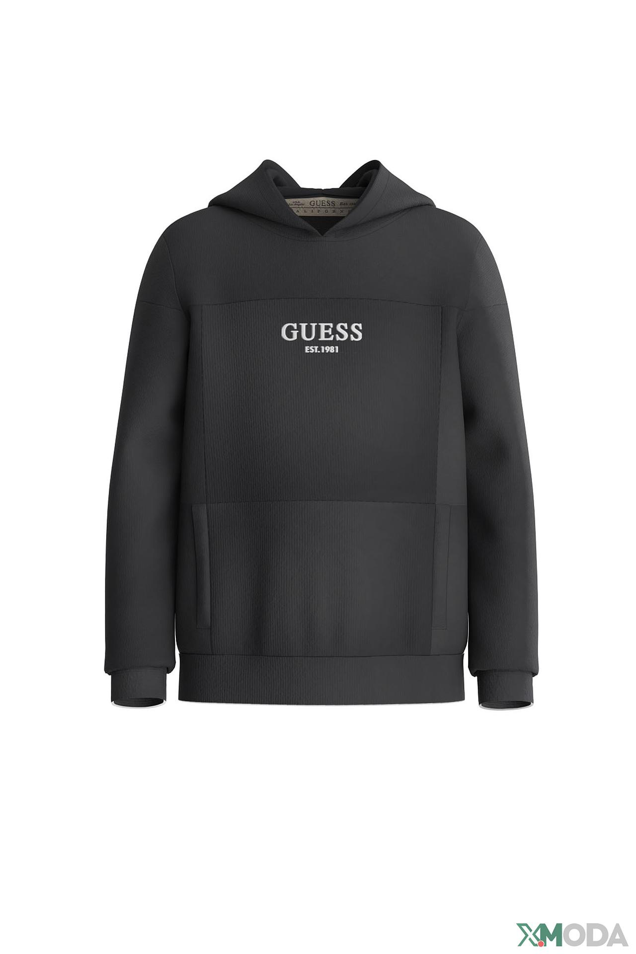 - Дизайн: Современный дизайн с логотипом Guess на груди. Модель с капюшоном и карманами-кенгуру добавляет практичности и делает образ более завершенным.