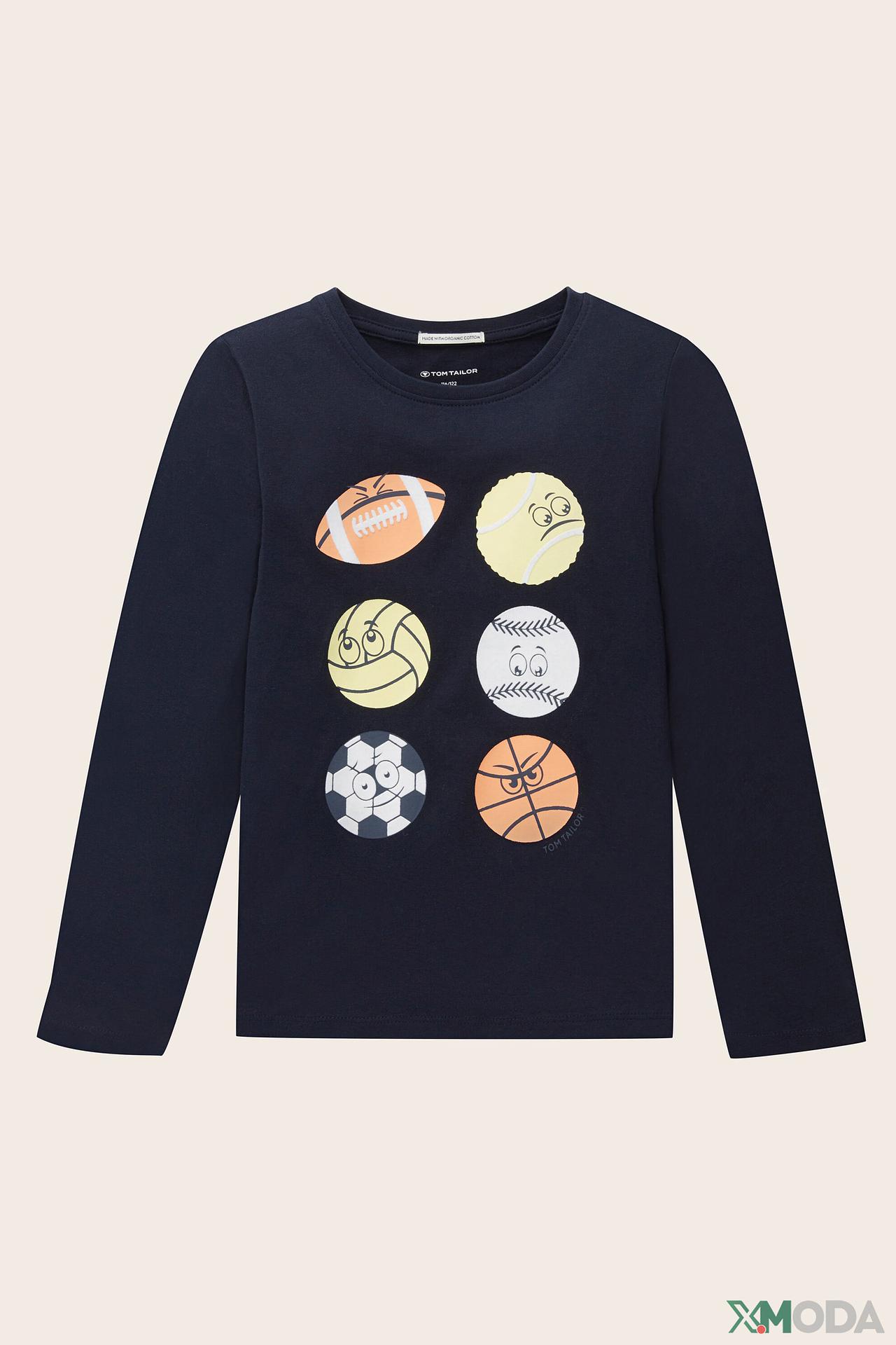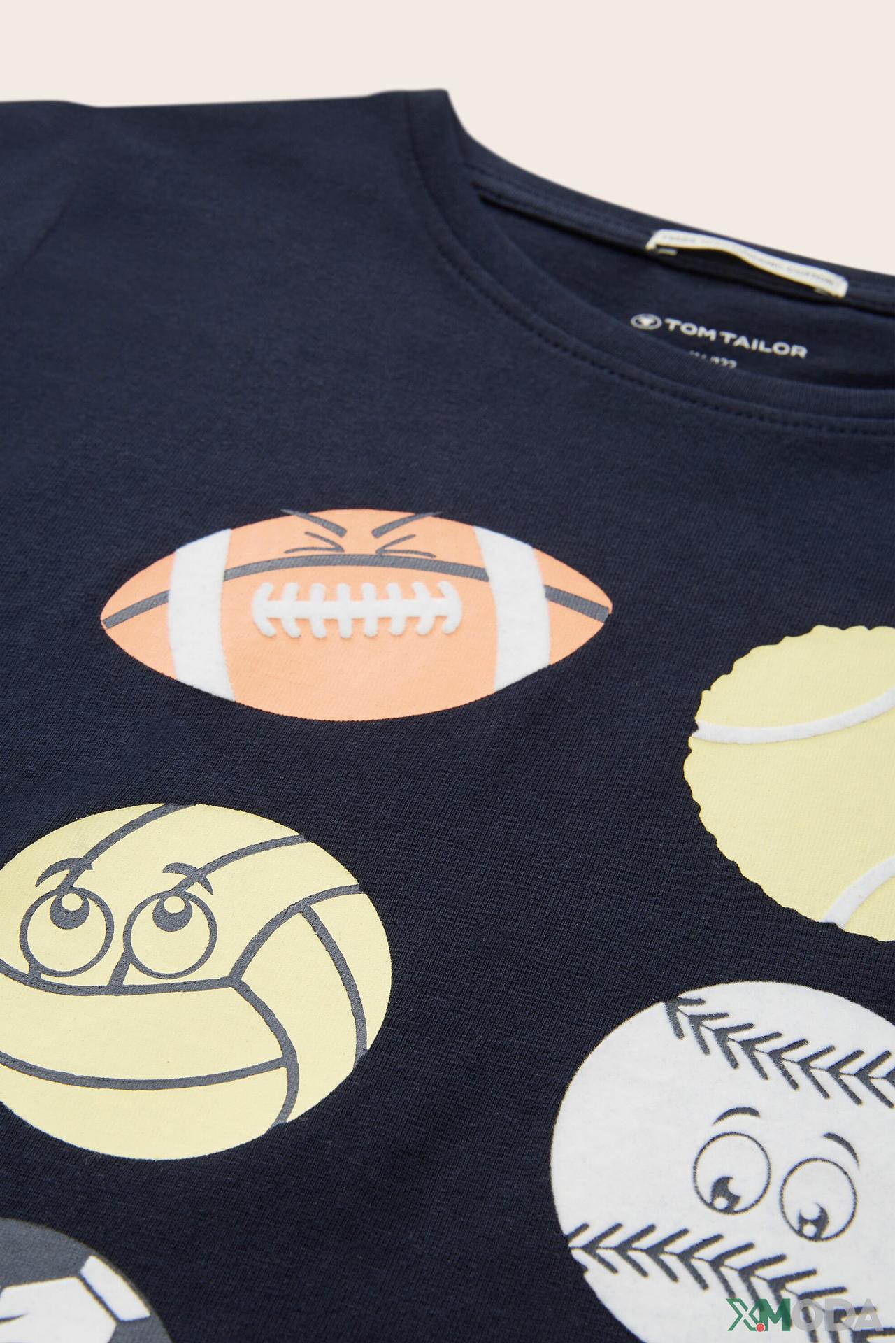 Футболка Tom Tailor для мальчика темно-синяя с принтом спортивных мячей