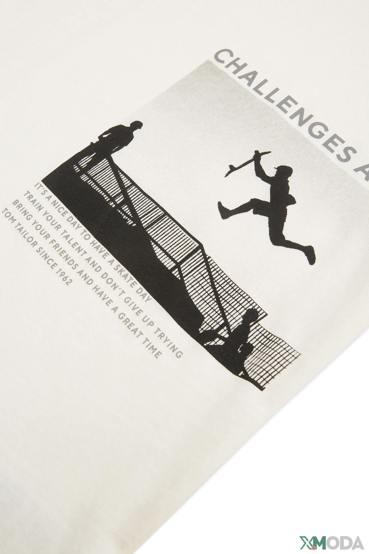 - Дизайн: Футболка украшена ярким принтом с тематикой скейтбординга и вдохновляющим текстом. Это добавит индивидуальности любому образу.