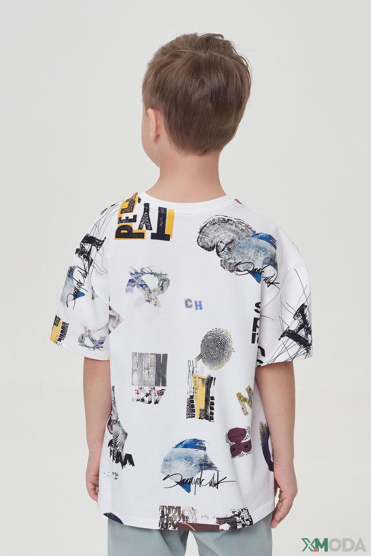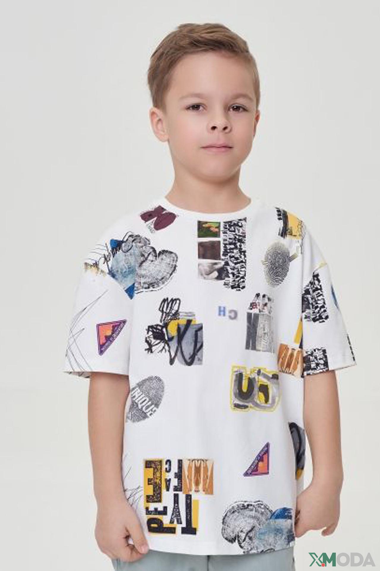 - Современный дизайн. Яркий и абстрактный рисунок на белом фоне придаёт футболке современный и динамичный вид, делая её заметным элементом гардероба маленького модника.