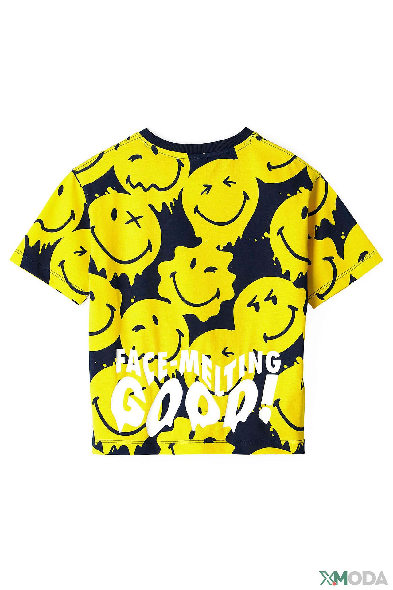 - Яркий дизайн SMILEY WORLD: Футболка выделяется броским принтом с множеством весёлых смайликов, которые непременно поднимут настроение любому ребёнку. Задняя сторона украшена уникальным слоганом, добавляющим игривости образу.