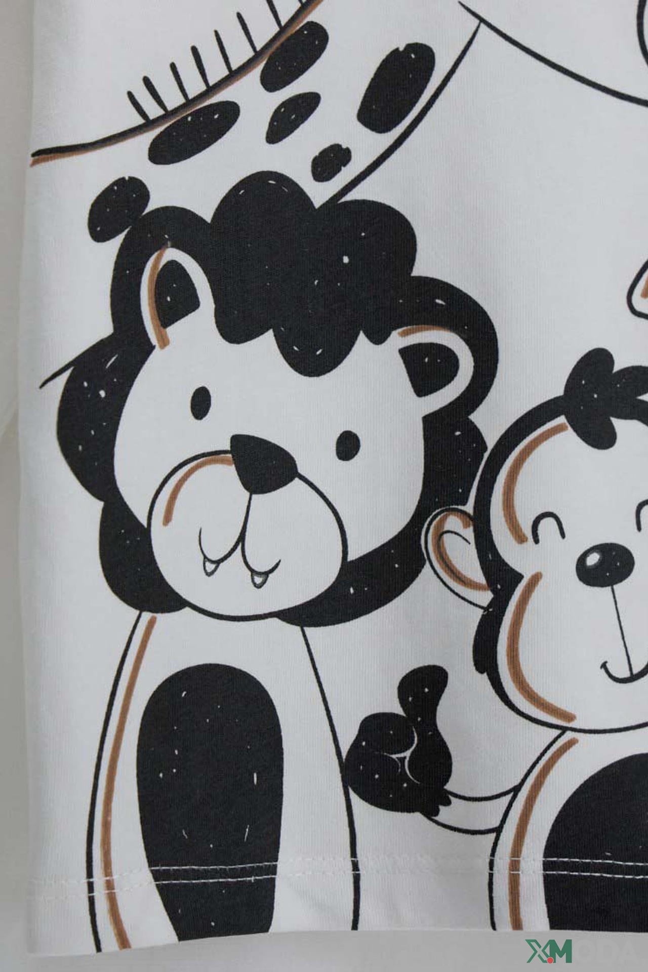 - Забавный дизайн: Оригинальный принт с любимыми животными развивает воображение ребенка и добавляет образу игривости. Контрастные черные и коричневые детали рисунка приковывают взгляд.