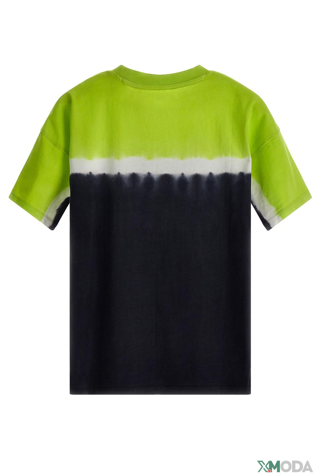 Футболка Guess, детская, зелёно-чёрная с принтом