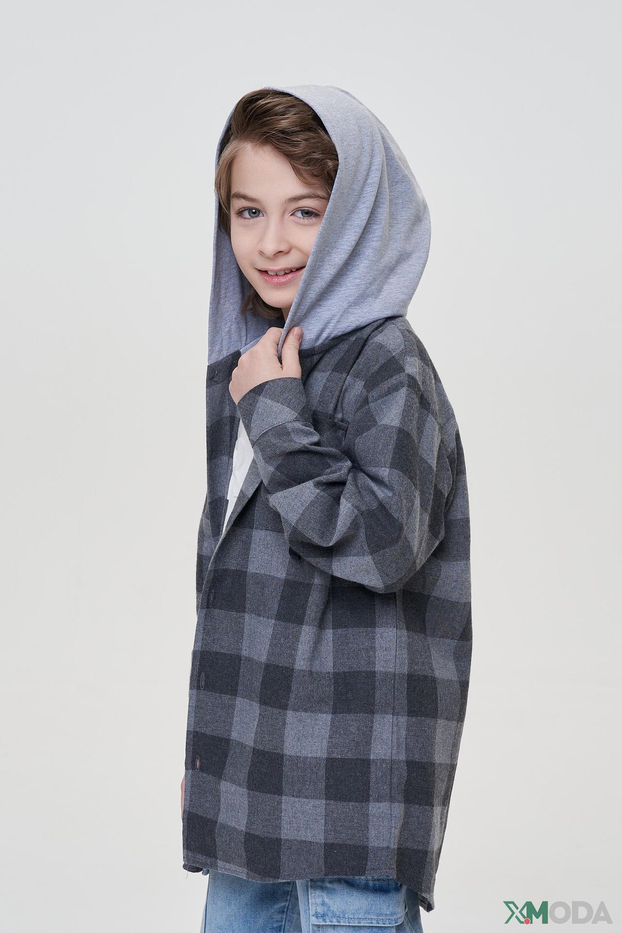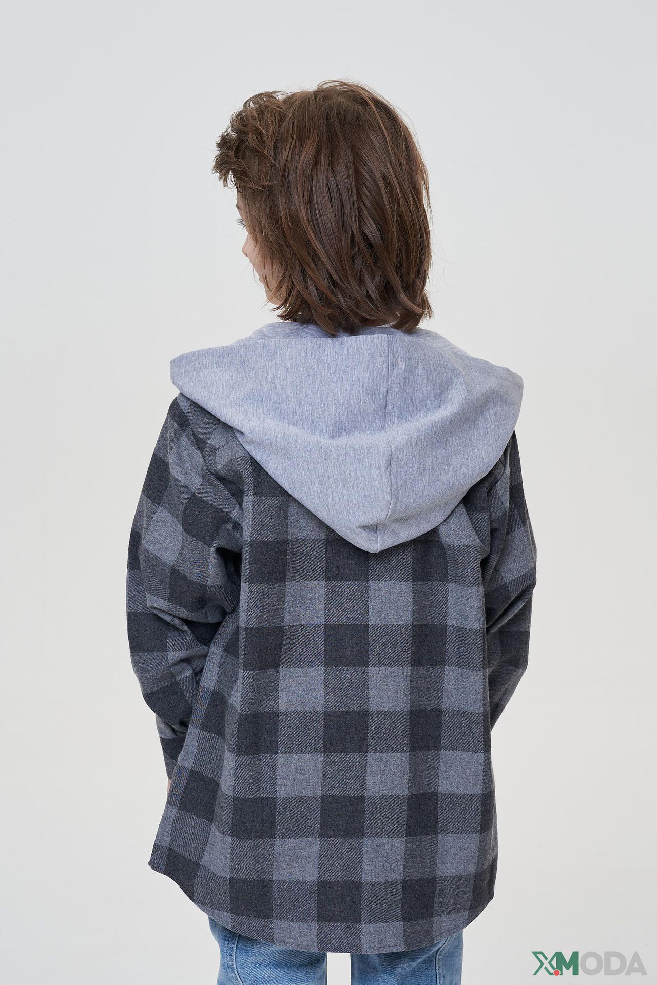 Рубашка-куртка Choupette серая в клетку с капюшоном для мальчика