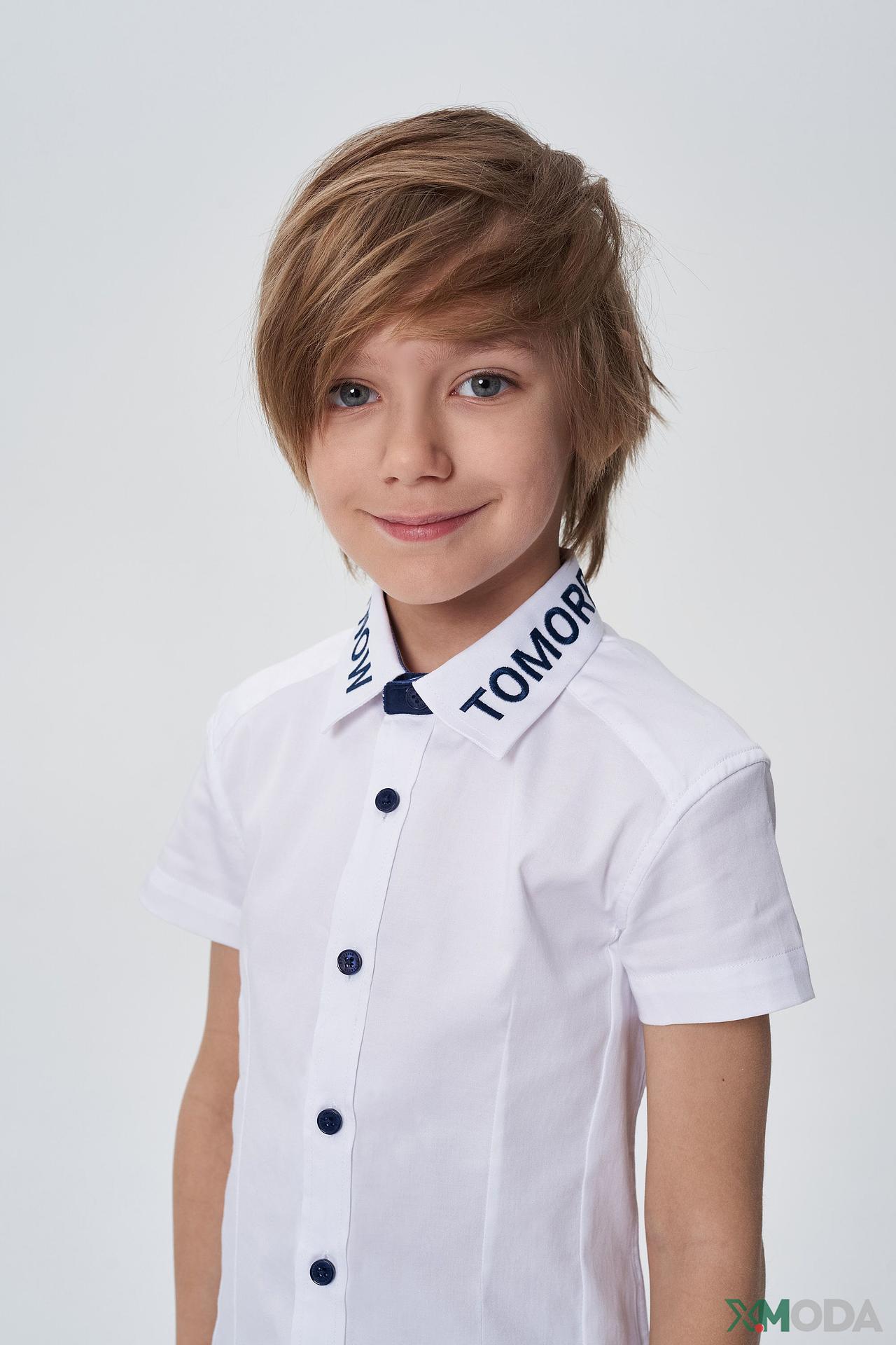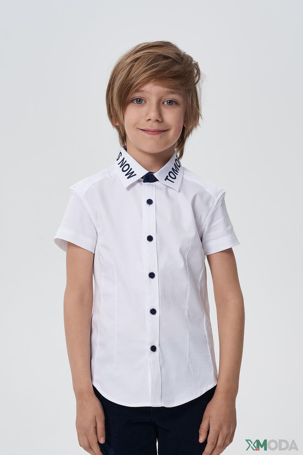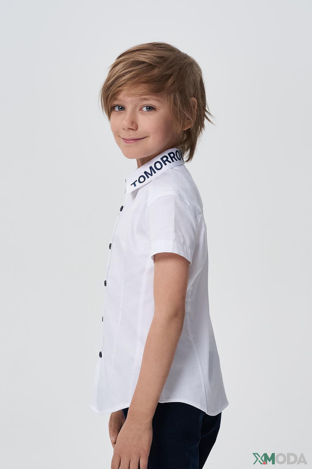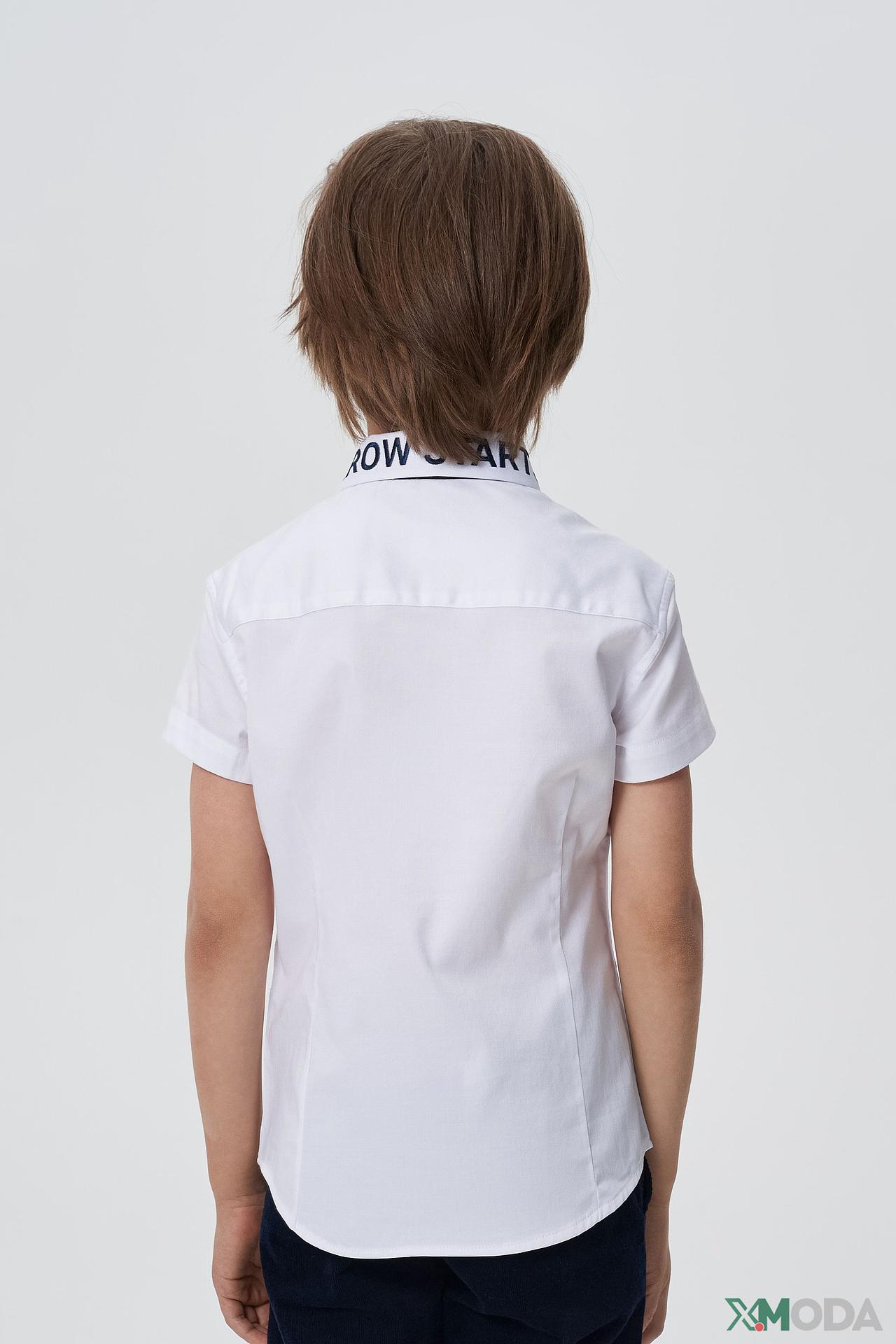 Рубашка с коротким рукавом идеально подходит для теплой погоды, а практичный крой обеспечивает удобство в повседневной носке. Оригинальный дизайн с надписью на воротничке добавит образу юного джентльмена индивидуальности.