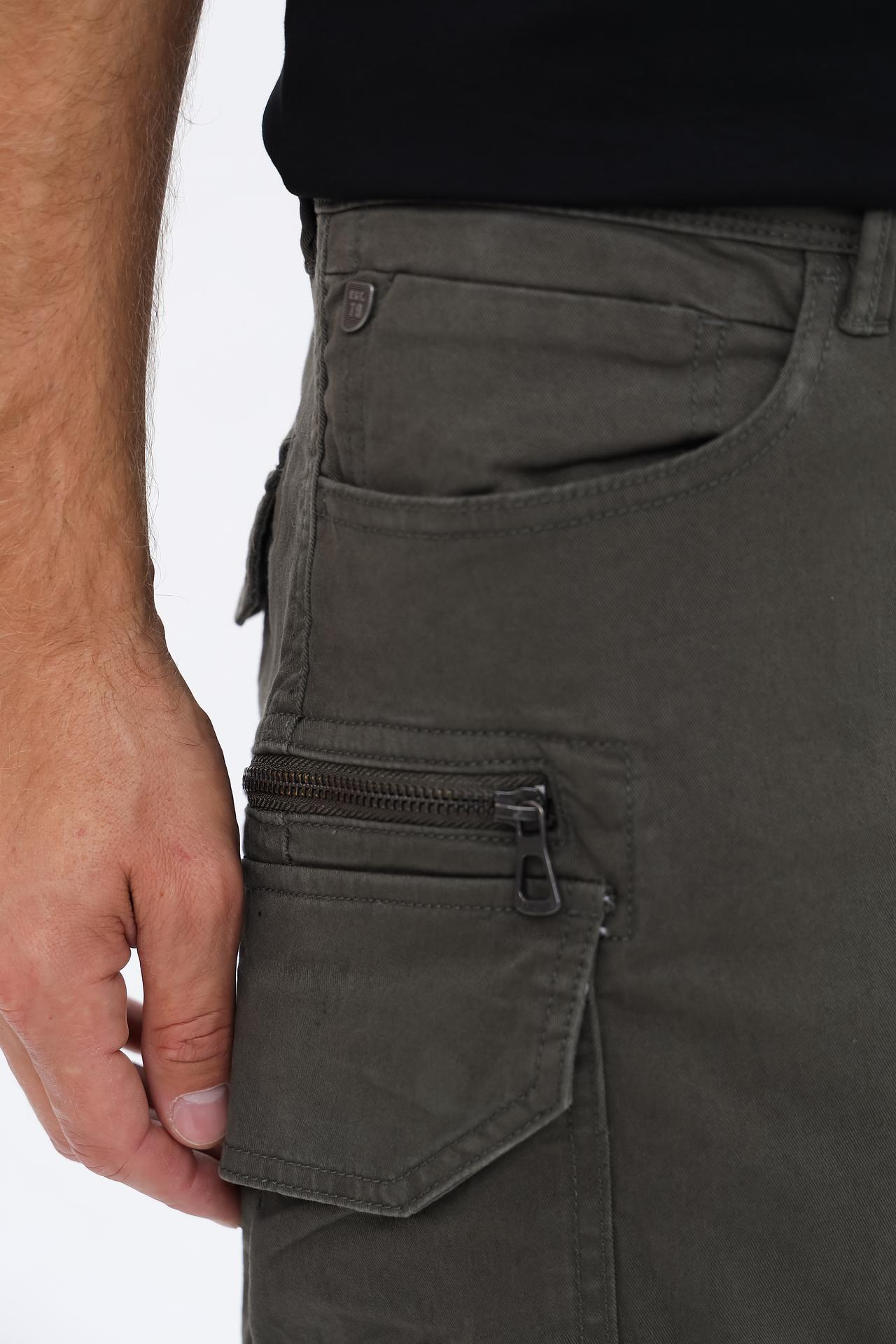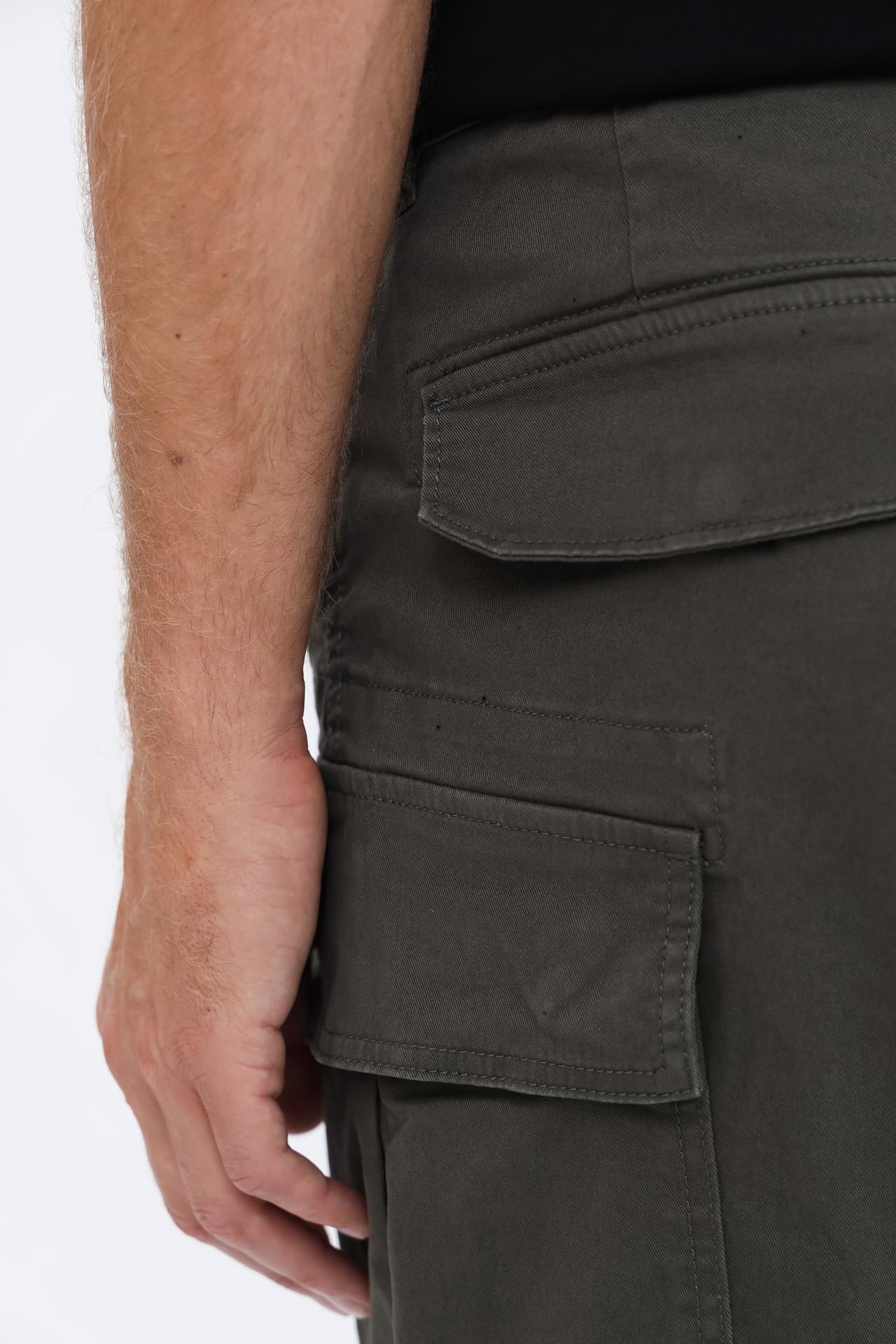 - Функциональные карманы: Модель оснащена удобными накладными карманами карго по бокам, один из которых дополнен стильной застежкой-молнией. Задние карманы с клапанами и стандартные боковые карманы обеспечивают достаточно места для хранения необходимых мелочей, делая брюки максимально практичными.