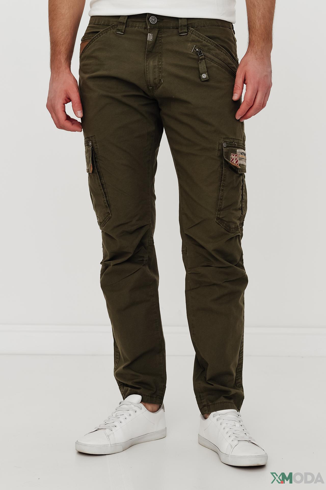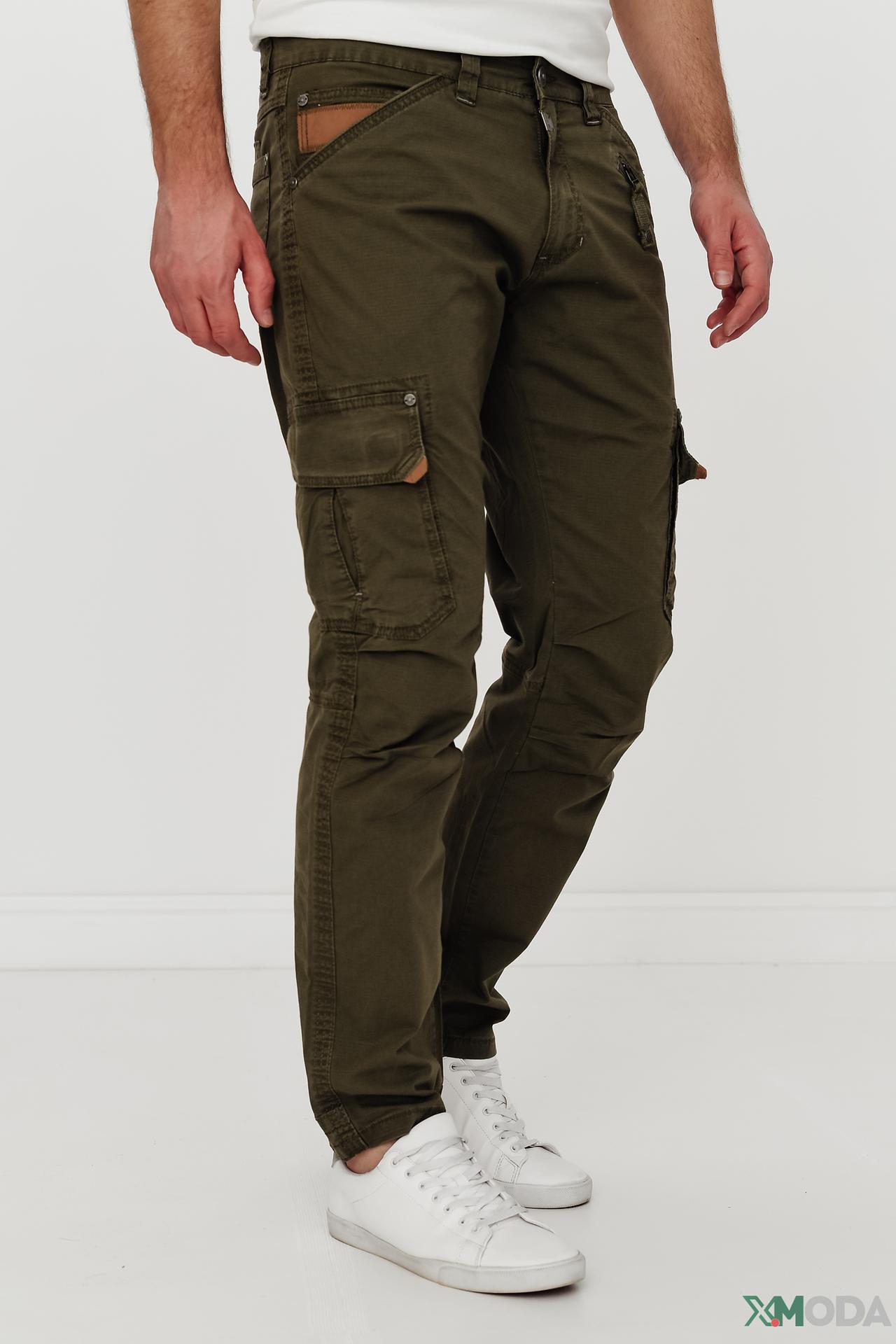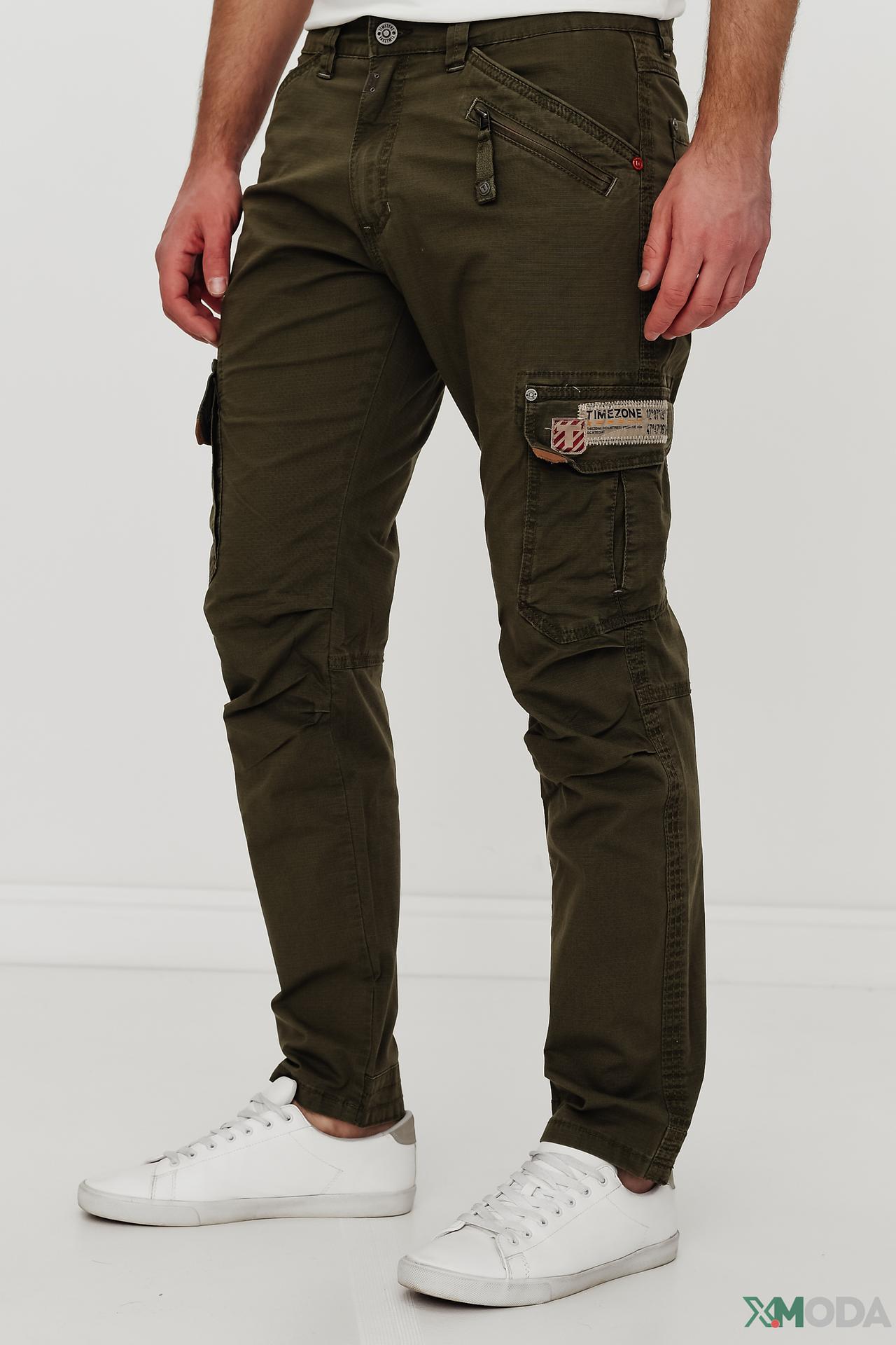 Брюки Time Zone зелёные с карманами карго и нашивками