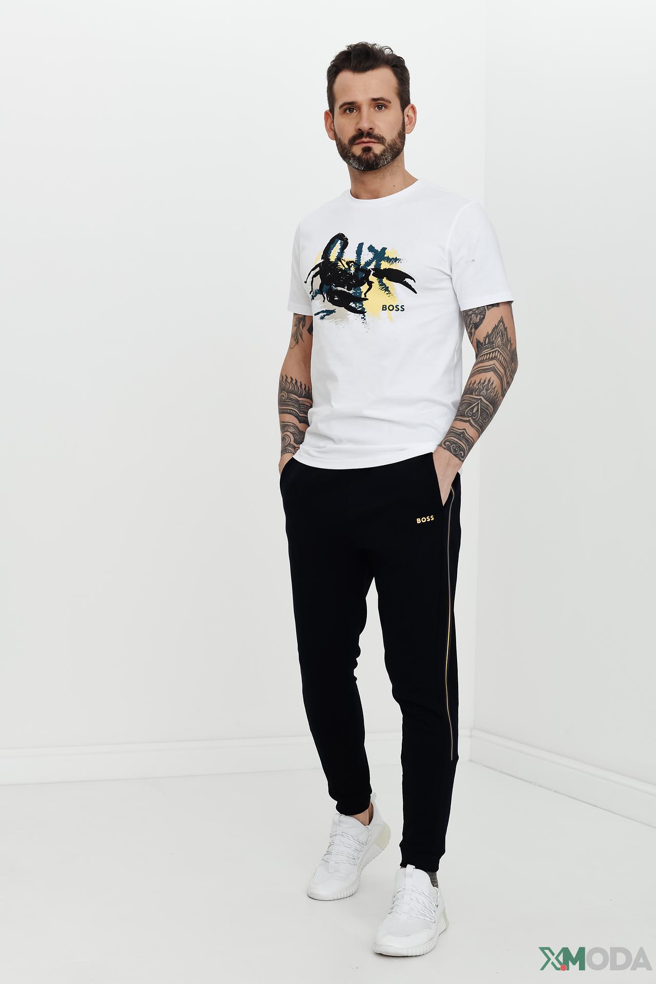 - Элегантный дизайн. Брюки дополнены золотистыми лампасами и логотипом BOSS, создавая стильный и запоминающийся образ.