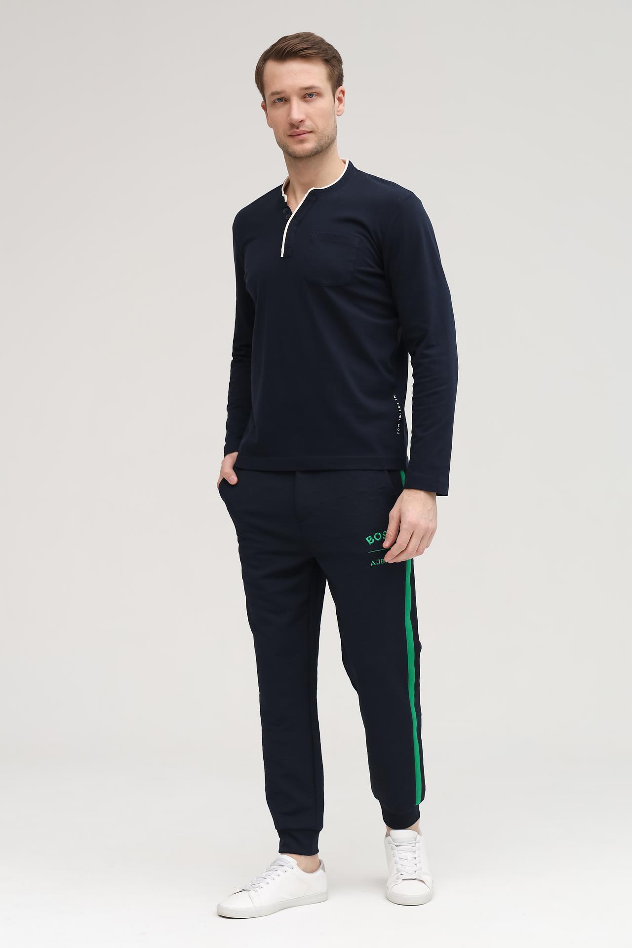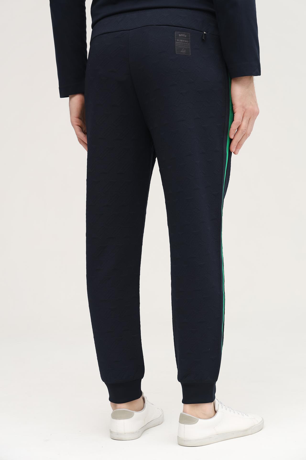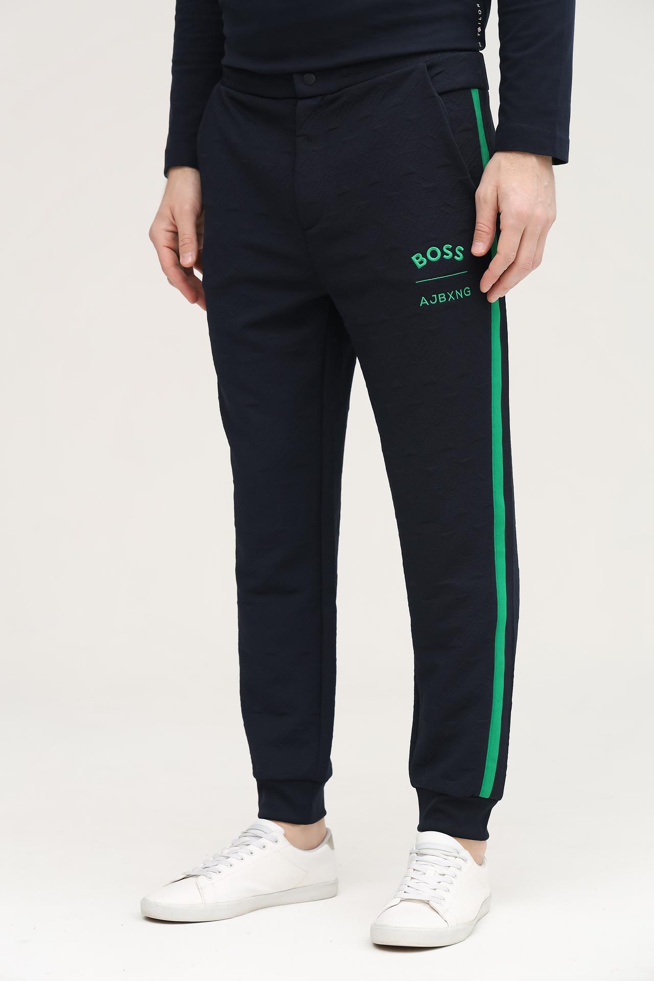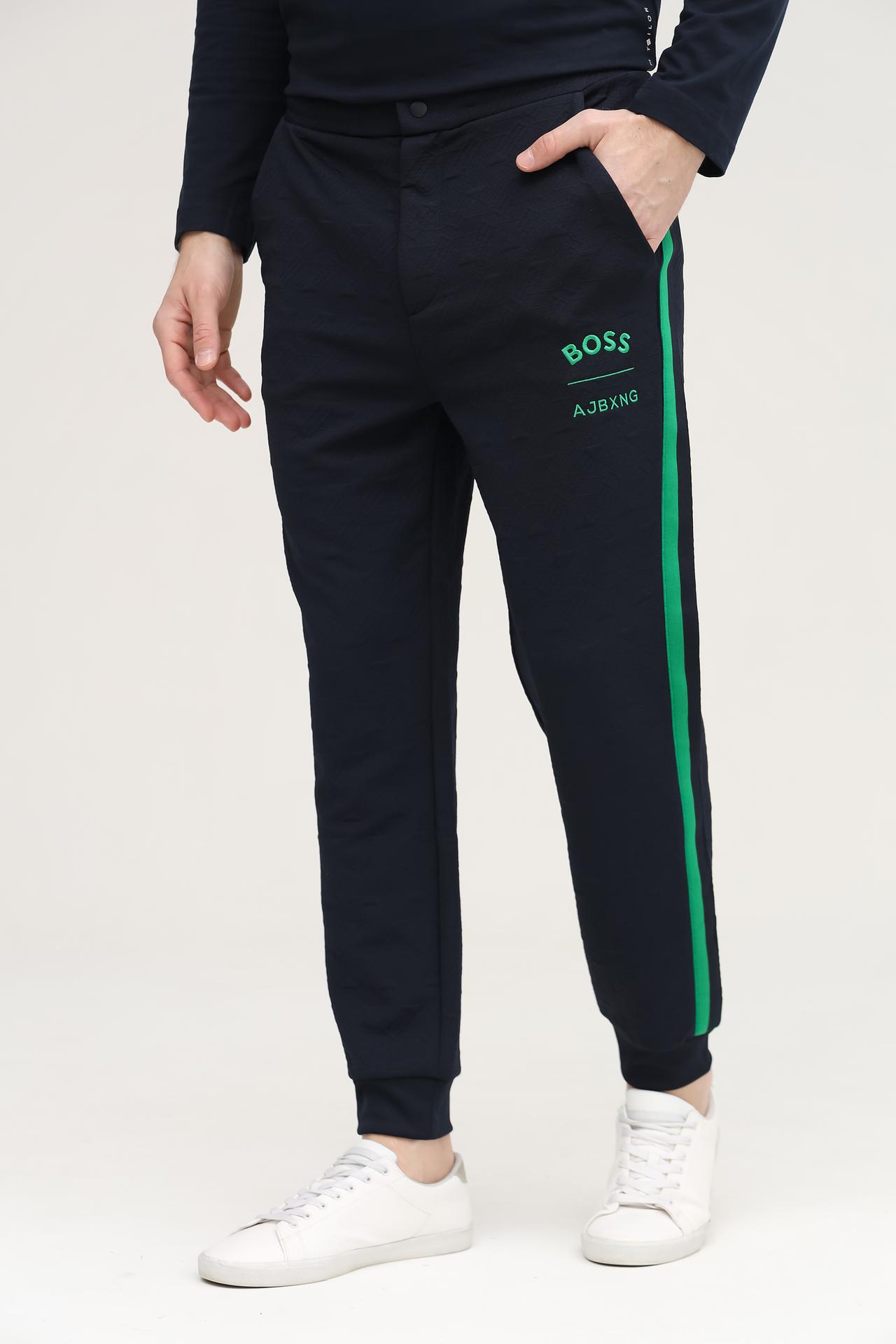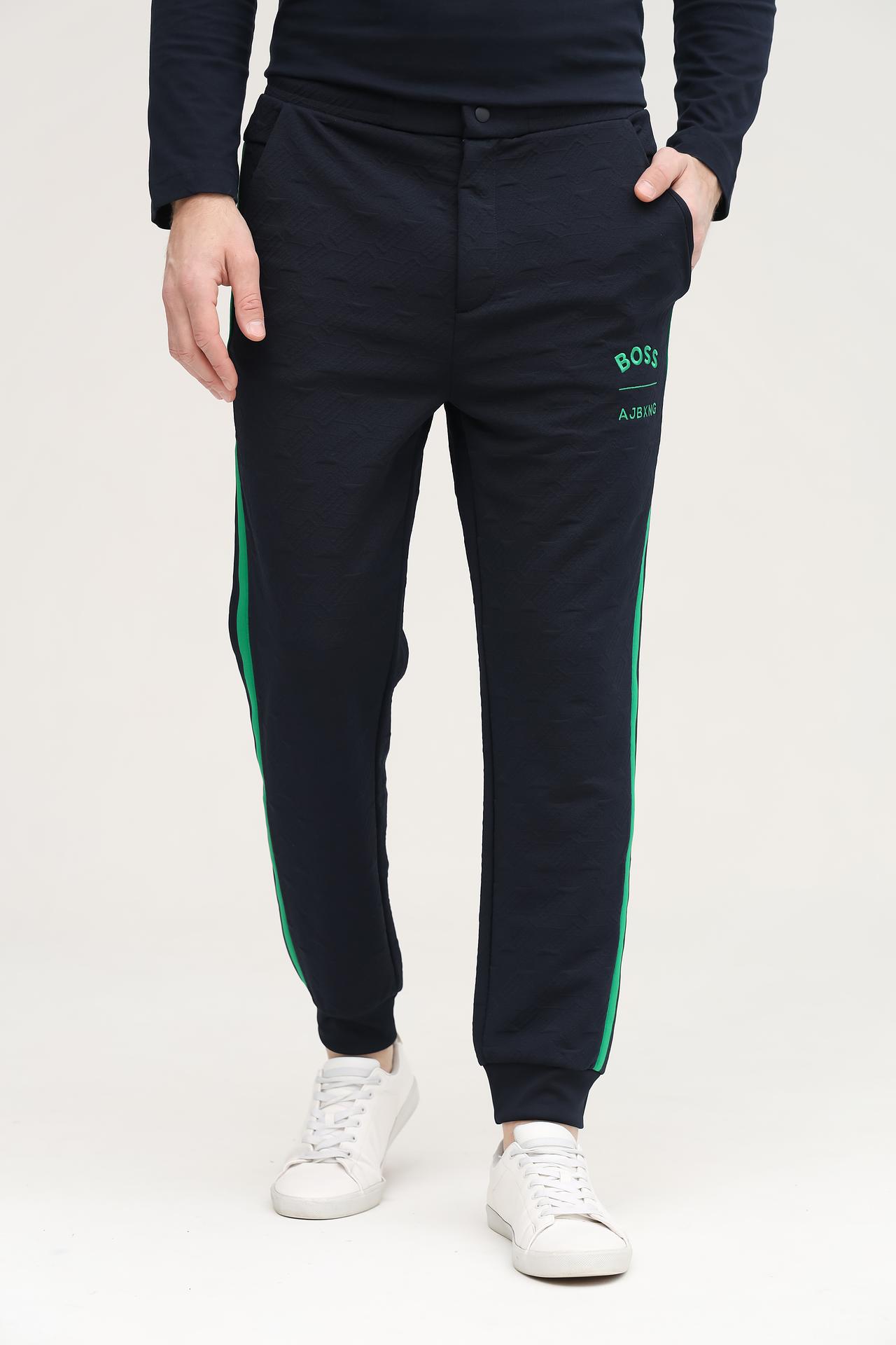Спортивные брюки Boss Green тёмно-синие с зелёными лампасами и логотипом