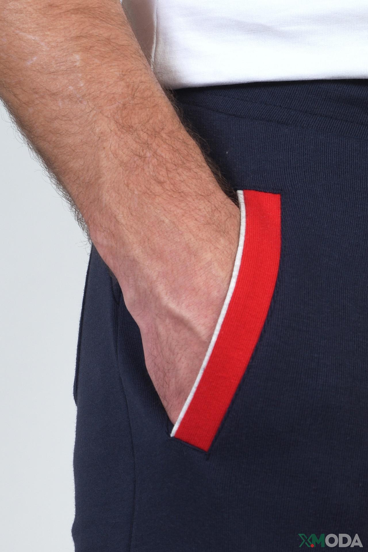 - Детали: Брюки дополнены контрастными лампасами и окантовкой карманов, что добавляет образу динамичности.