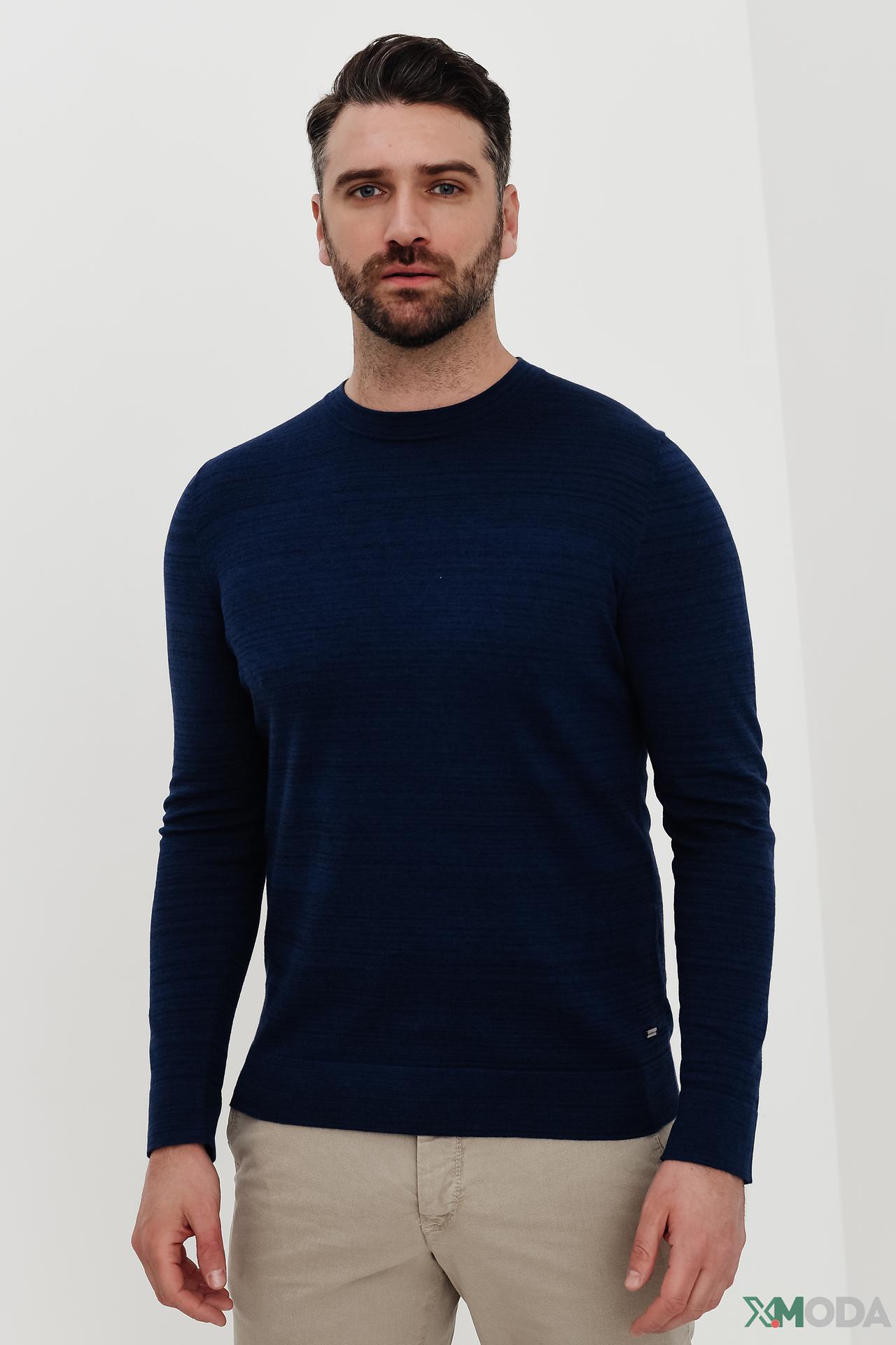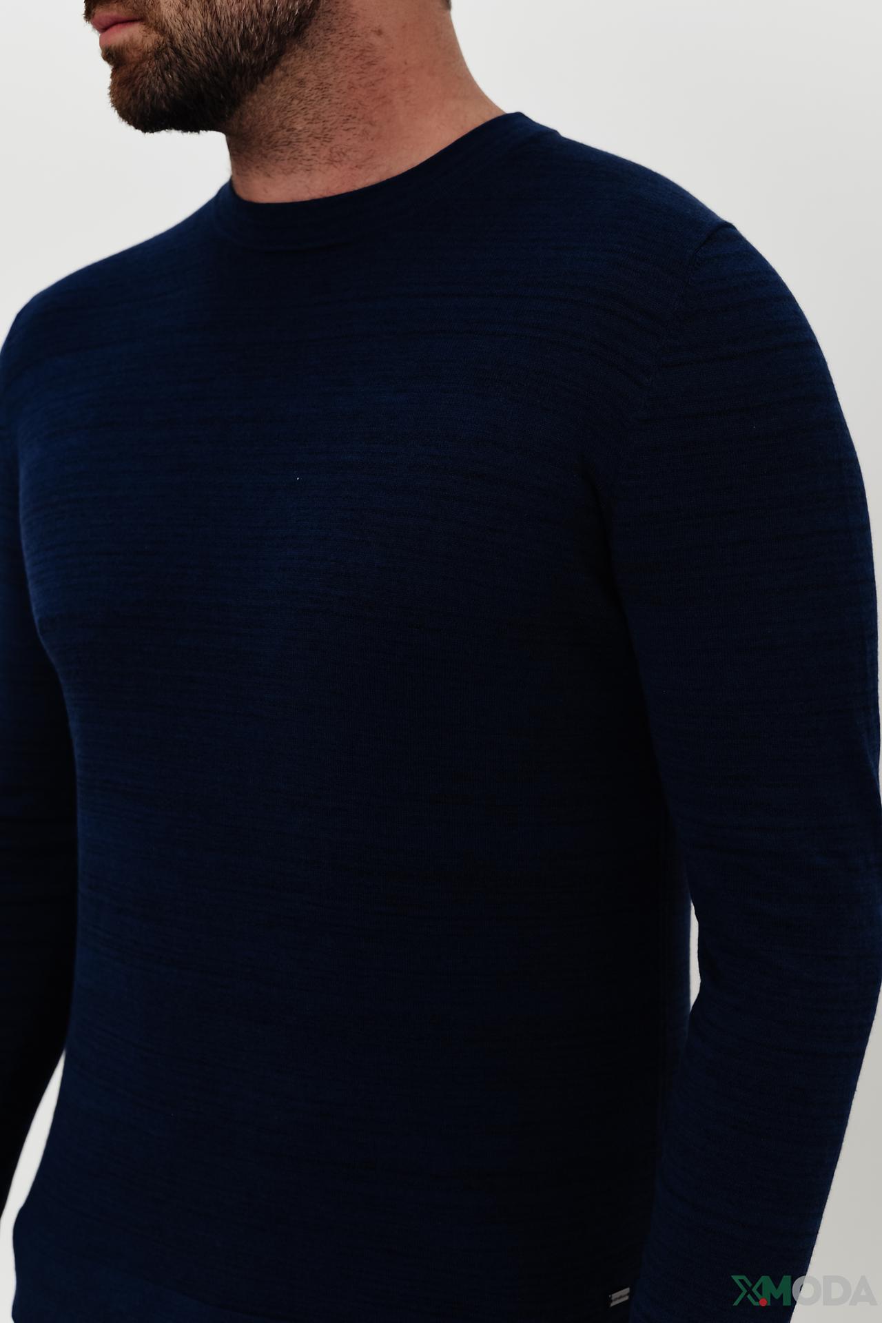 - Классический дизайн: Мужской джемпер с круглым вырезом и прямым силуэтом станет основой повседневного и делового образа. Лаконичный синий цвет и деликатная меланжевая текстура добавляют элегантности.