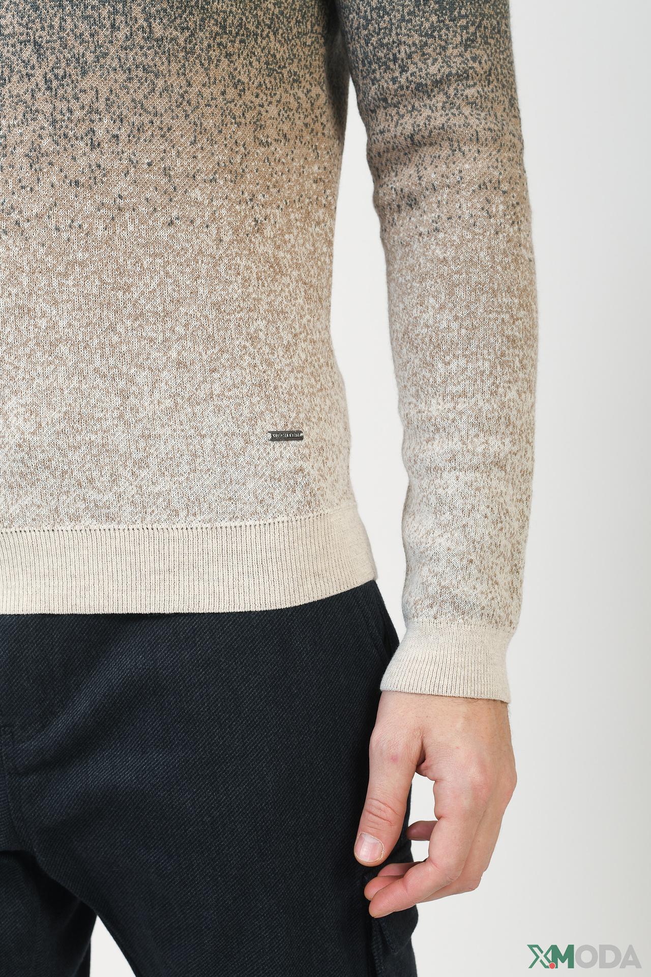- Оригинальный дизайнГлавной особенностью модели является меланжевая вязка с эффектным градиентом — плавным переходом от темного-серого к светло-бежевому оттенку. Этот элемент дизайна делает джемпер стильным и запоминающимся.