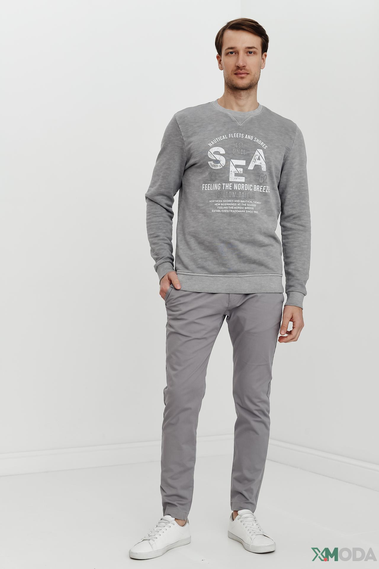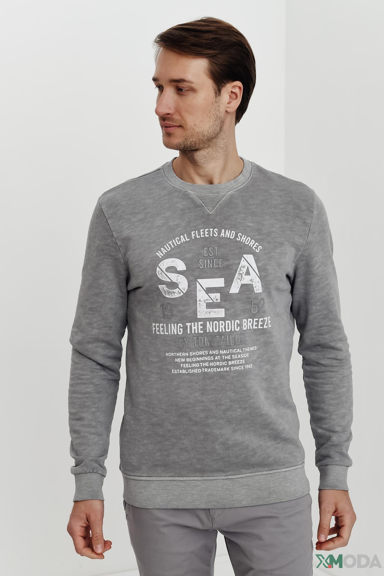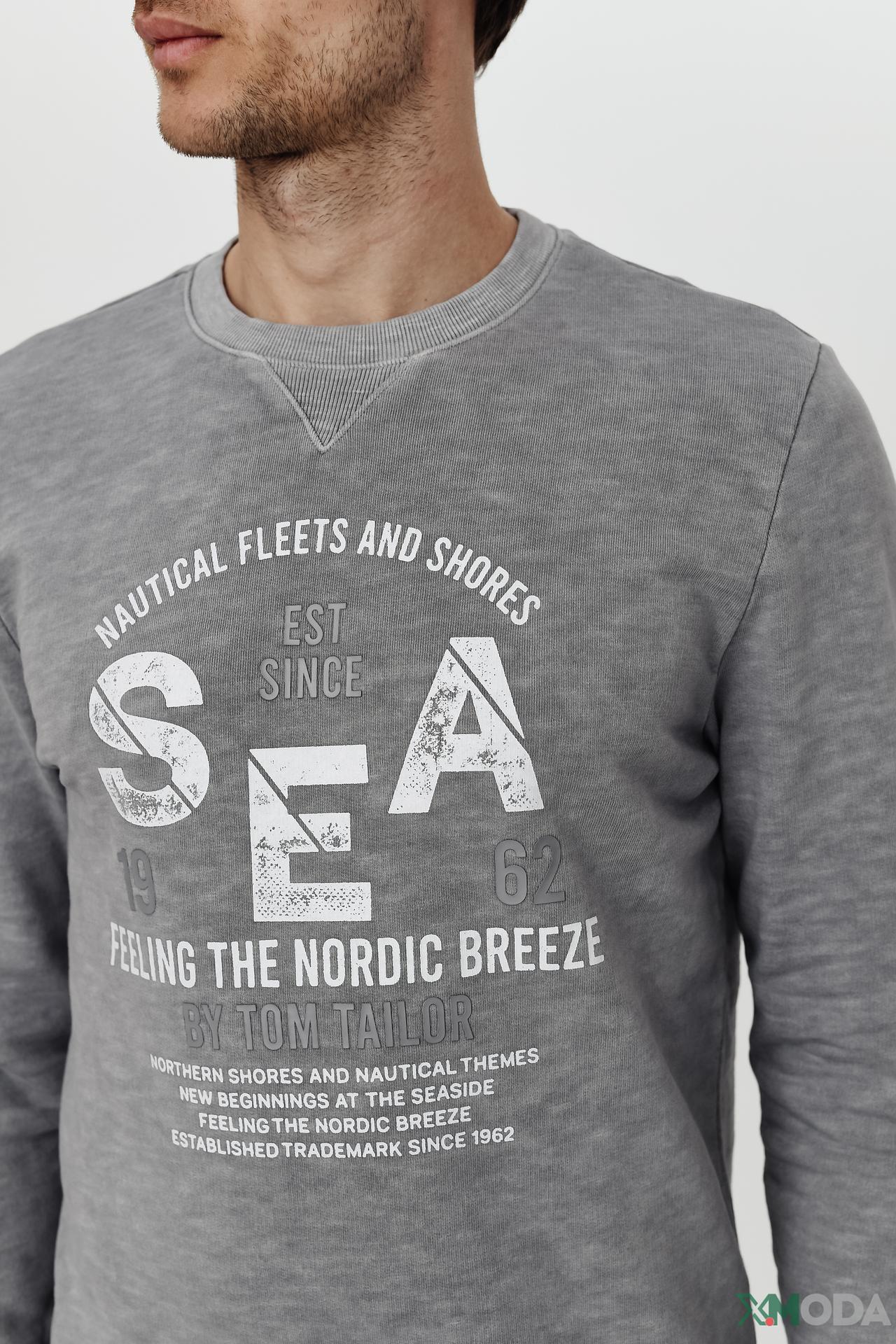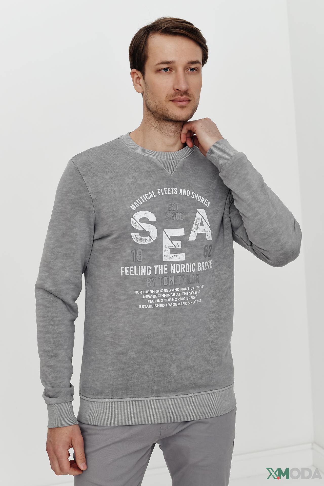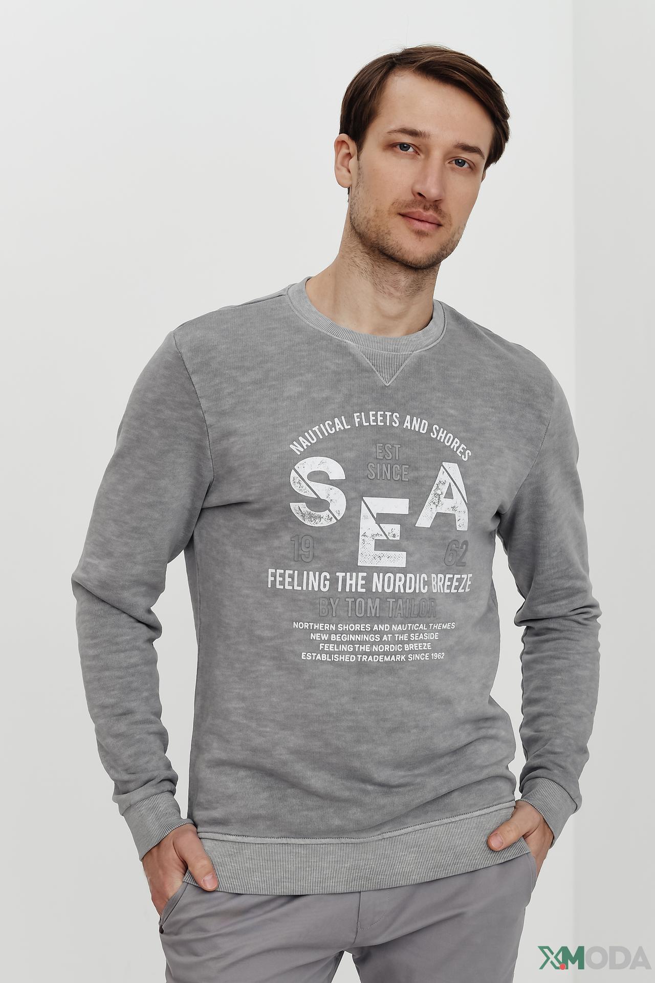 Джемпер Tom Tailor серый с текстовым принтом