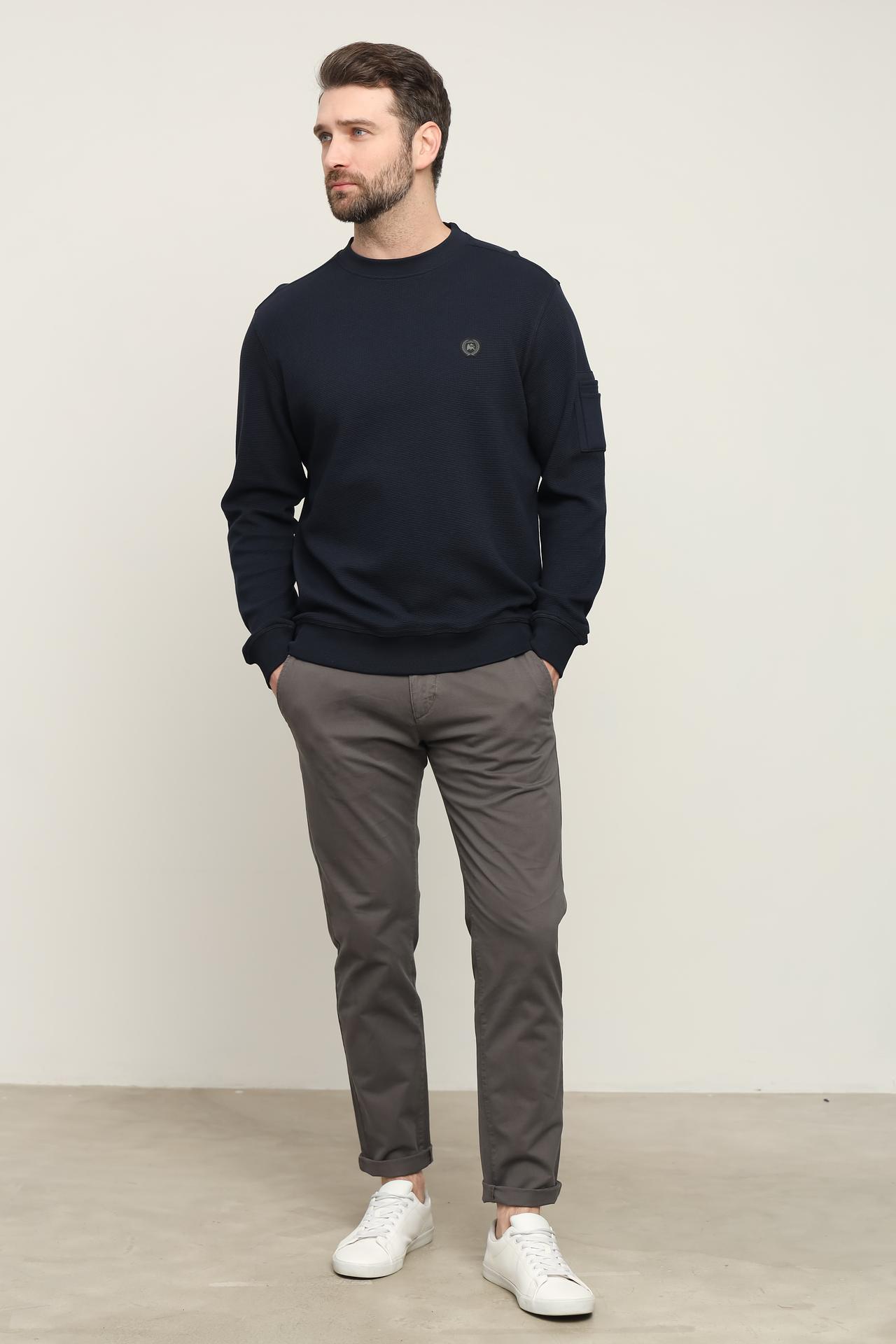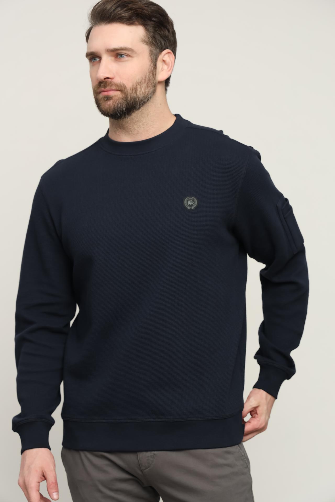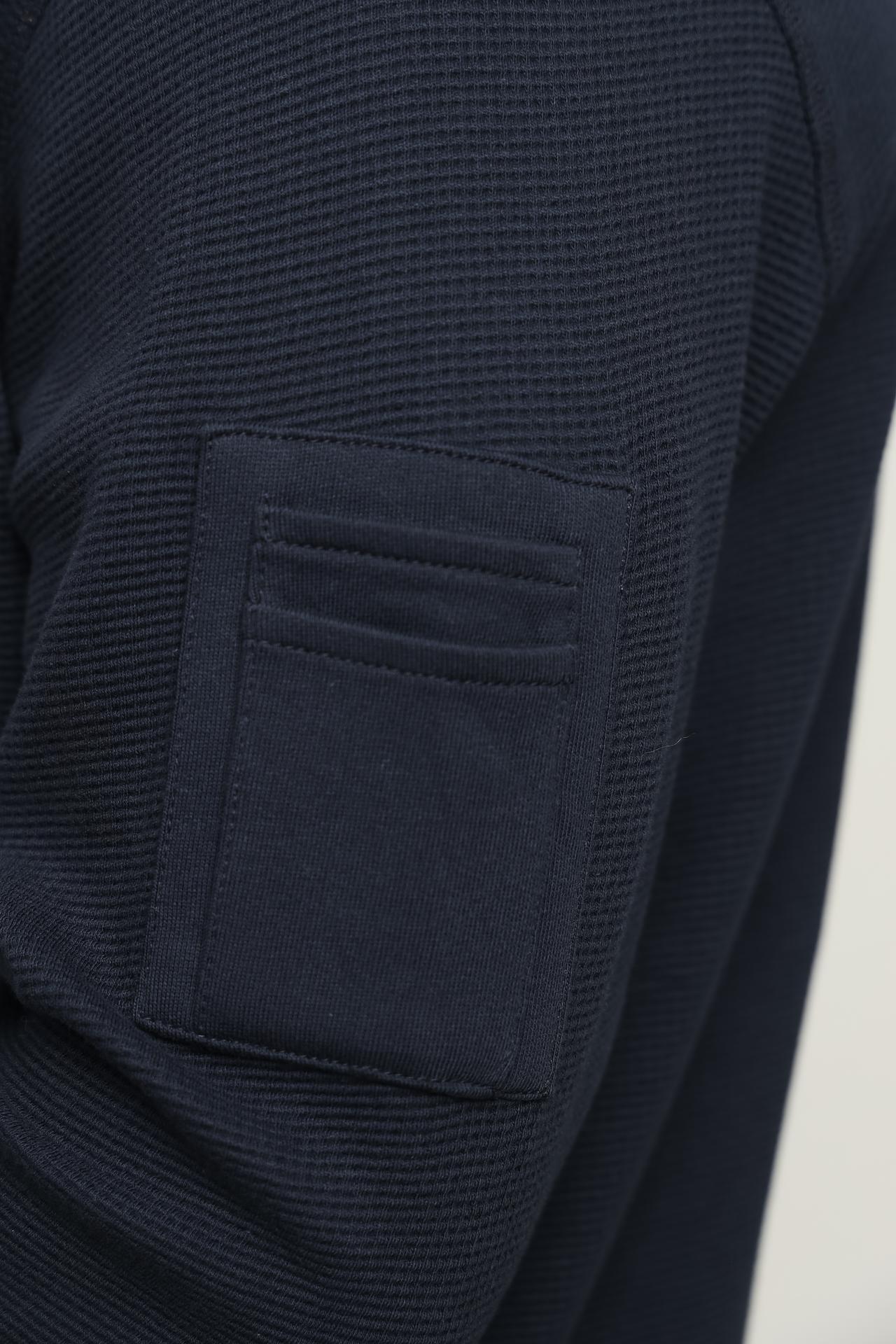 Джемпер Lerros сочетает в себе высокое качество материала и современный дизайн. Тёмно-синий цвет делает его универсальным, позволяя легко комбинировать с различными элементами гардероба. Дополнительный карман на рукаве добавляет практичности и оригинальности.