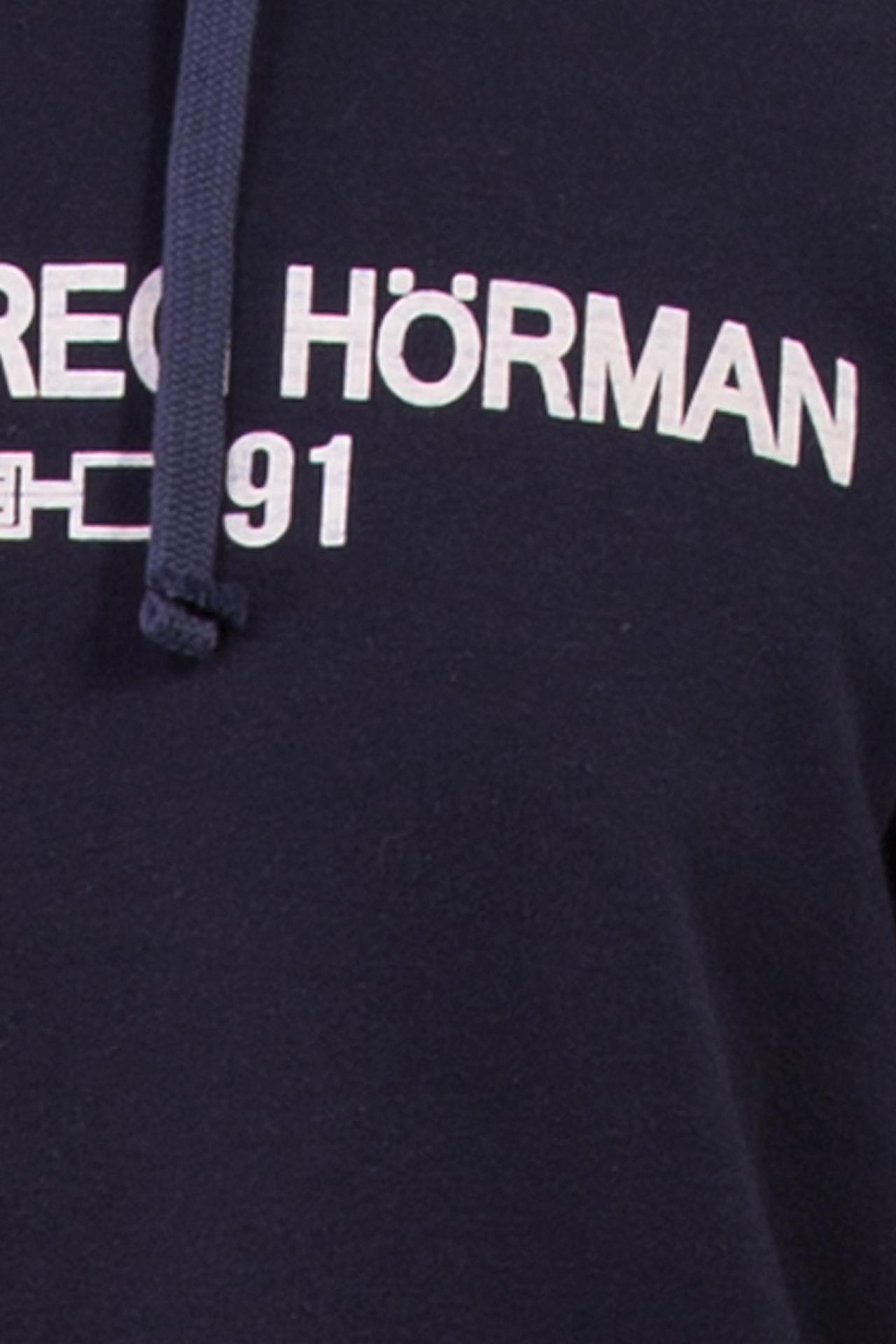 Стильный мужской пуловер от Greg Horman – это сочетание комфорта, качества и современного дизайна. Изделие выполнено из смесовой ткани, где преобладает натуральный хлопок, обеспечивающий приятные ощущения на коже и отличную вентиляцию. Небольшое добавление полиэстера повышает прочность и сохраняет первозданный вид изделия даже после многократных стирок. Модель с капюшоном и удобным карманом-кенгуру идеально подходит для создания непринужденных образов в прохладную погоду. Белый контрастный принт с названием бренда и цифрами добавляет акцент и подчеркивает индивидуальность.