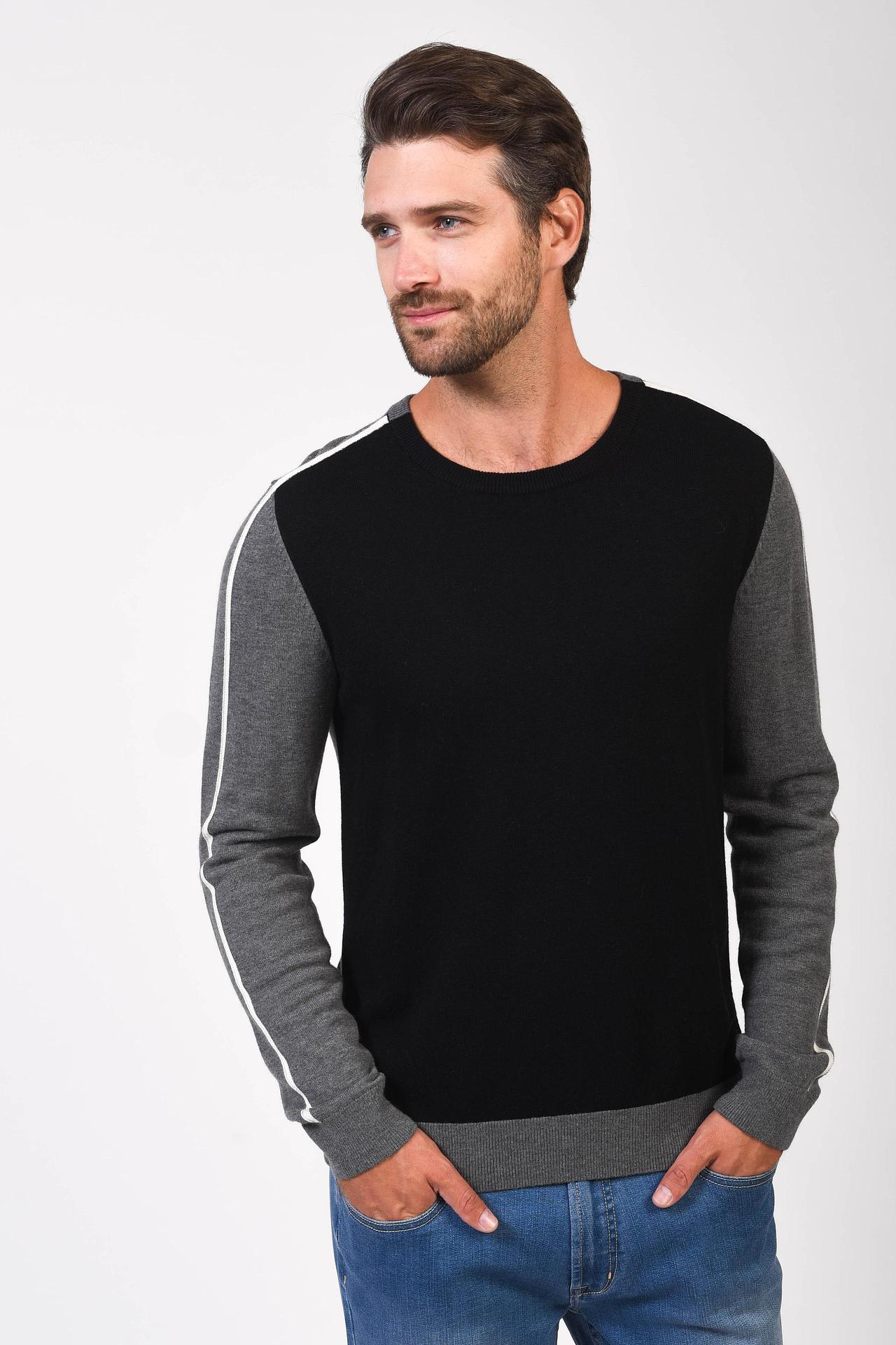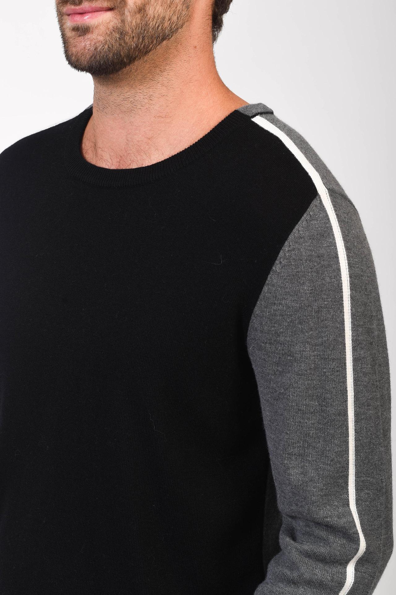- Дизайн: Комбинированный джемпер с черной передней частью и серыми рукавами. Декоративная белая полоса по внешней стороне рукава придает динамичный вид.