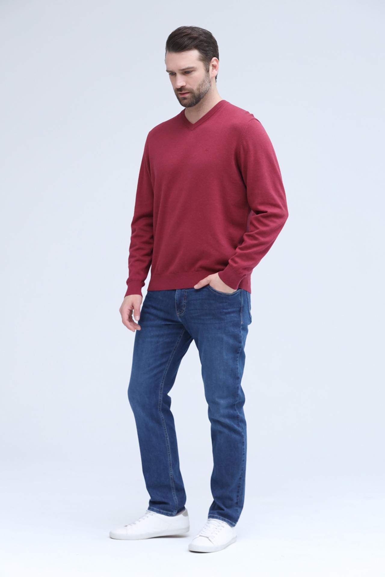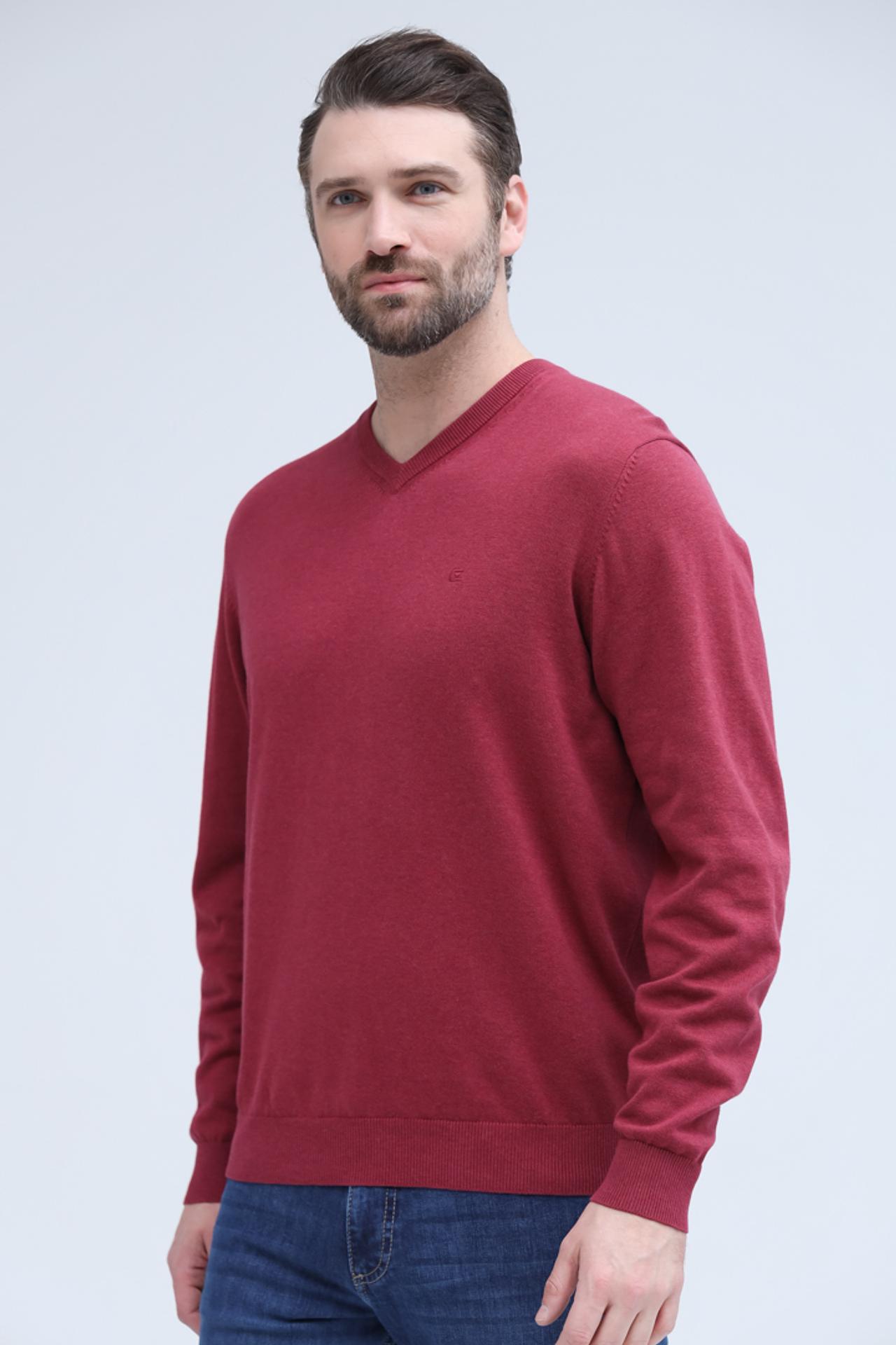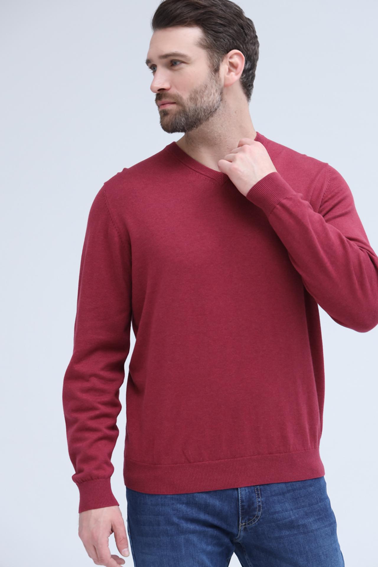 - Цвет: Глубокий бордовый оттенок. Насыщенный цвет пуловера придает образу элегантность и утонченность, легко комбинируется с другими цветами.