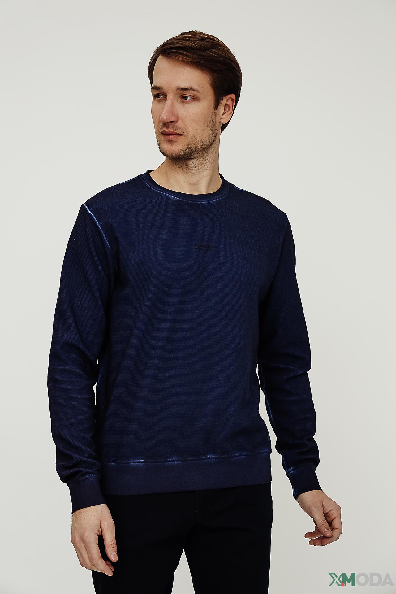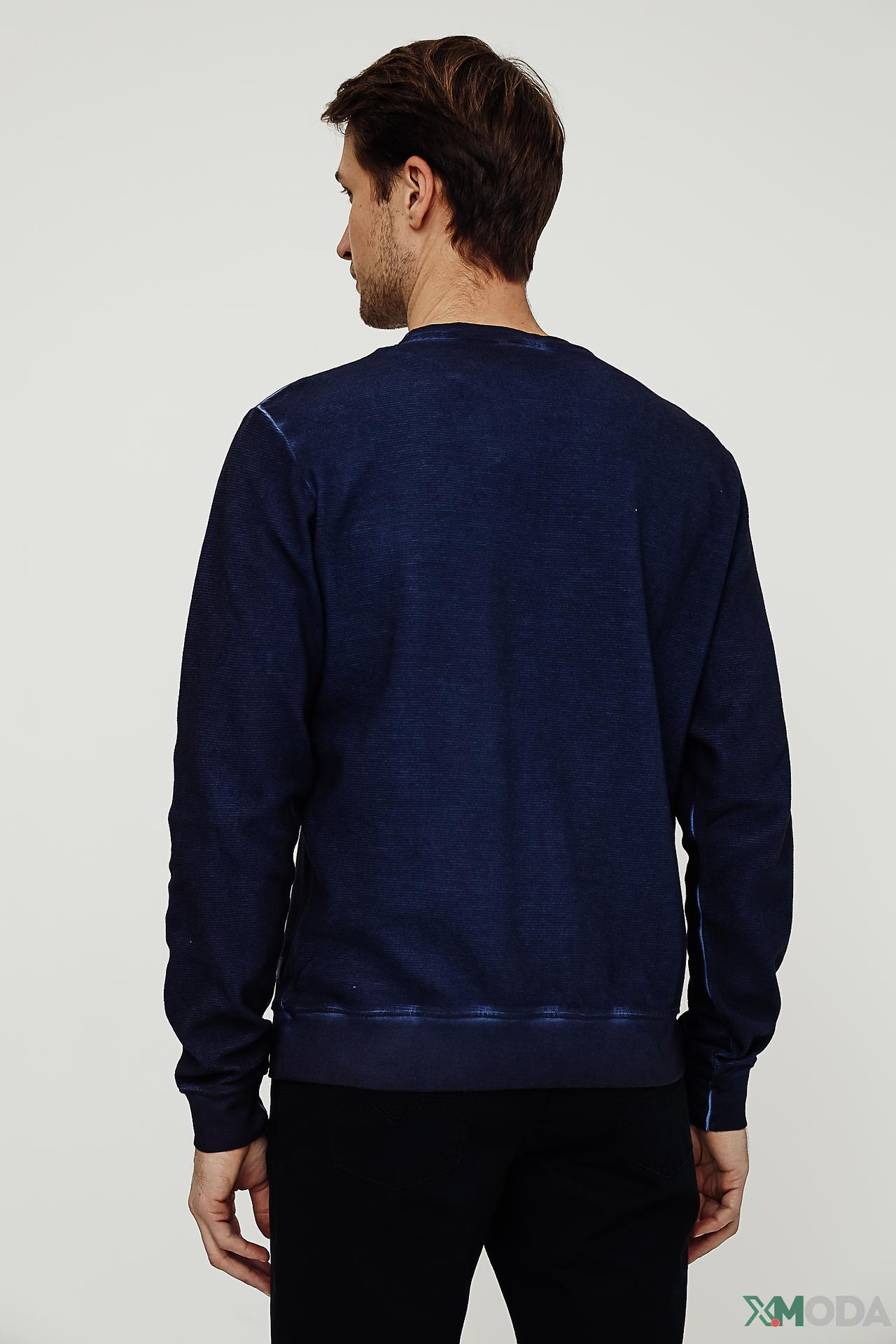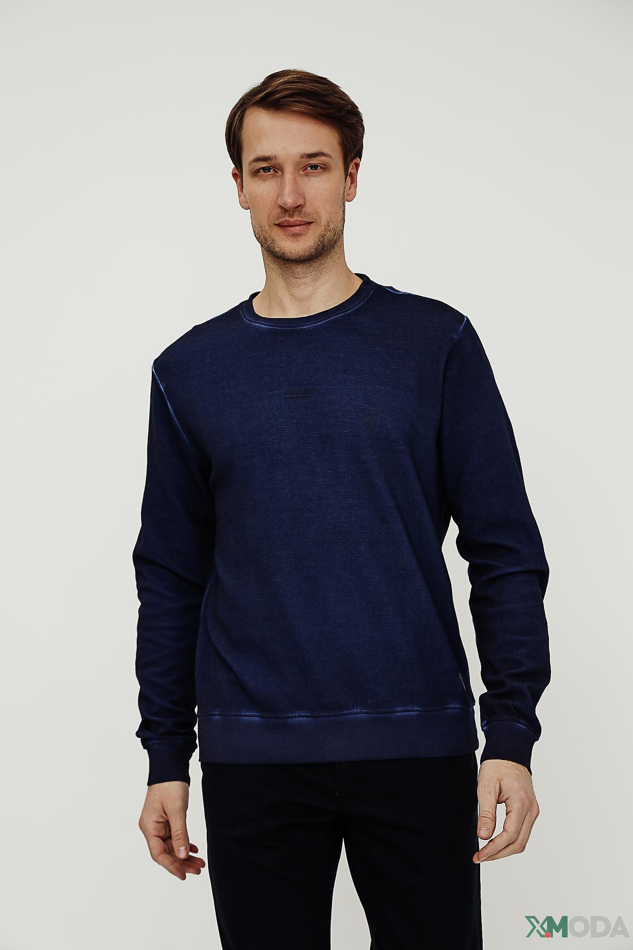 - Универсальность: Синий джемпер легко комбинируется с джинсами, брюками чинос или спортивными штанами, создавая как повседневные, так и более собранные образы. Эффект легкой потертости придает модели модный и непринужденный вид.